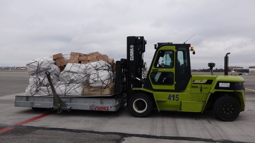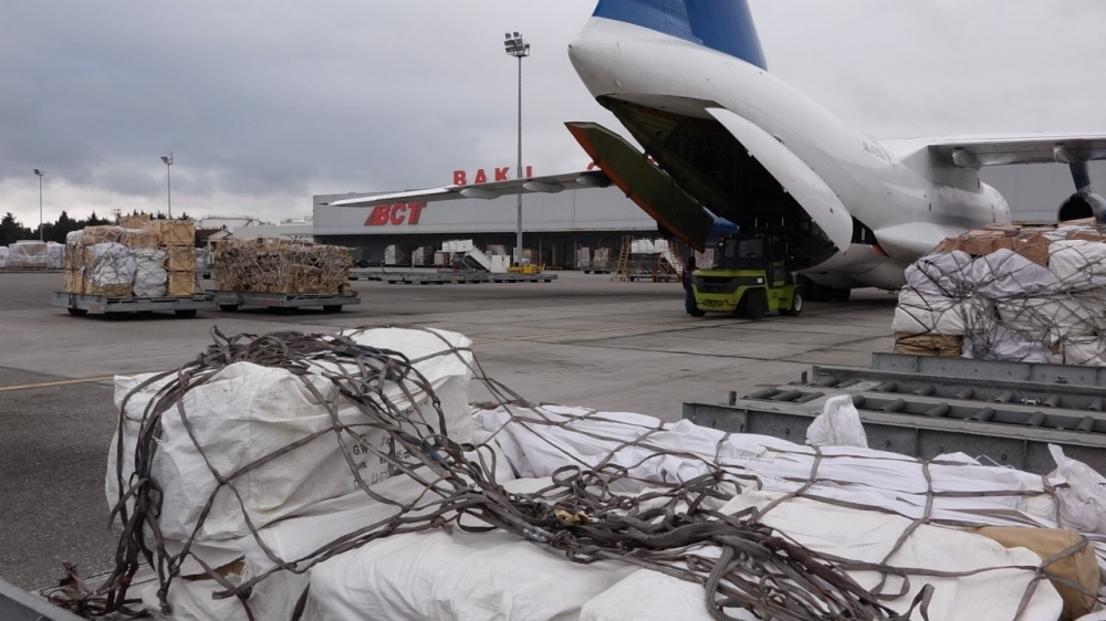 Heydər Əliyev Beynəlxalq Aeroportundan Türkiyənin Adana şəhərinə istiqamət alan təyyarə ilə dağıntılardan ziyan çəkmiş insanların yerləşdirilməsi üçün çadırlar, ədyal və qızdırıcılar, habelə mobil səhra hospitalı üçün 3 ədəd konteyner yola salınıb.