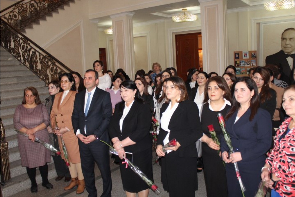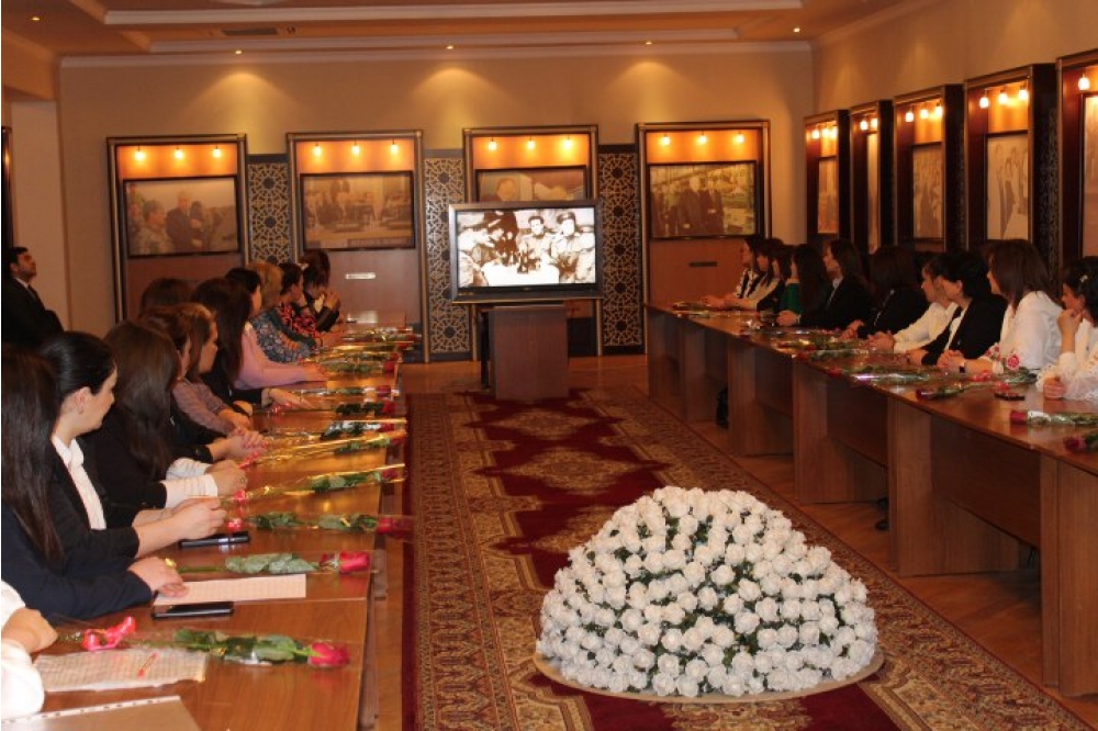Tədbirdə Uşaq Gənclər İnkişaf Mərkəzinin direktoru Xuraman Qurbanova, mərkəzin əməkdaşları Ülviyyə Cəbiyeva, Könül Abdullayeva və İhamə Həsənova çıxış edərək qeyd etmişlər ki, Azərbaycanda qadınların hüquqlarının qorunması, onların ictimai fəallığının təşkili məsələsi Ulu Öndər Heydər Əliyev tərəfindən hər zaman diqqət mərkəzində saxlanılıb. Ümummilli Liderimizin hələ 1969-cu ildə hakimiyyətə gəldiyi dövrə nəzər salsaq, dövlət strukturlarına, məsuliyyətli ictimai işlərə qadınların irəli çəkildiyini görə bilərik. Bu mənada 1993-cü ildən sonrakı dövrdə də ölkəmizdə qadınlarımızın aktiv fəaliyyəti hər zaman diqqət mərkəzində olub. Azərbaycan qadınına ən yüksək qiyməti Heydər Əliyev verib. Ölkəmizdə dövlət qadın siyasətinin əsas prinsiplərinin müəyyən edilməsinin və dövlət səviyyəsinə qaldırılmasının məhz Ulu Öndərin adı ilə bağlı olması danılmaz bir tarixi faktdır. O, qadınların idarəetmə, qərarqəbuletmə və sosial həyatın bütün sahələrində irəli çəkilməsini vacib sayırdı.