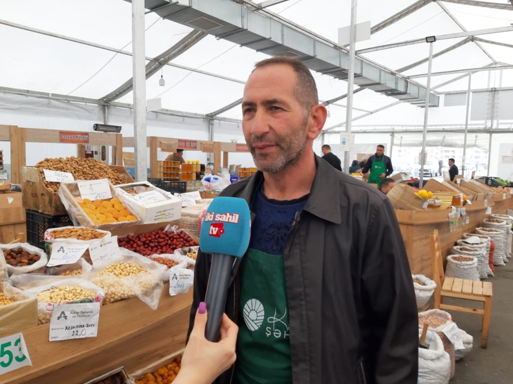 Ordubaddan gələn fermer Zahid İmanov alıcılara bayram süfrələrinin bəzəyi olan cürbəcür çeşiddə və qiymətə çərəzlər təklif edir: “Novruz yarmarkasında satmaq üçün öz həyətimin məhsullarını gətirmişəm. Həm ucuz, həm də keyfiyyətli məhsullardır. Kənd Təsərrüfatı Nazirliyinə fermərlər üçün yaradılan belə gözəl şəraitə görə təşəkkür edirəm. Qoz ləpəsinin kilosu 4 manatdan başlayır 15 manata qədərdir. Ərik qurusu 8- 11 manat, iydə və innab 7 manat, alça qurusu 6 manat, kişmiş 6 -10 manat arasında dəyişir, xurma qurusu 3 manat, qarışıq çərəzin kilosu 9 manat, yerli gavalı qurusu 6 manat, araxis 5 manat, qovrulmuş araxis isə 7 manat, qabıqlı badam 5 manat, badam ləpəsi 15 manatdır. Alıcılar da qiymətdən razılıq edirlər. Elə olur ki, endirim istəyən müştərilər olur, o zaman qiymətləri bir az da aşağı salırıq ki, hər kəs süfrəsi üçün nemət alıb aparsın. Alıcılıq qabiliyyəti hələ ki, aşağıdır.”