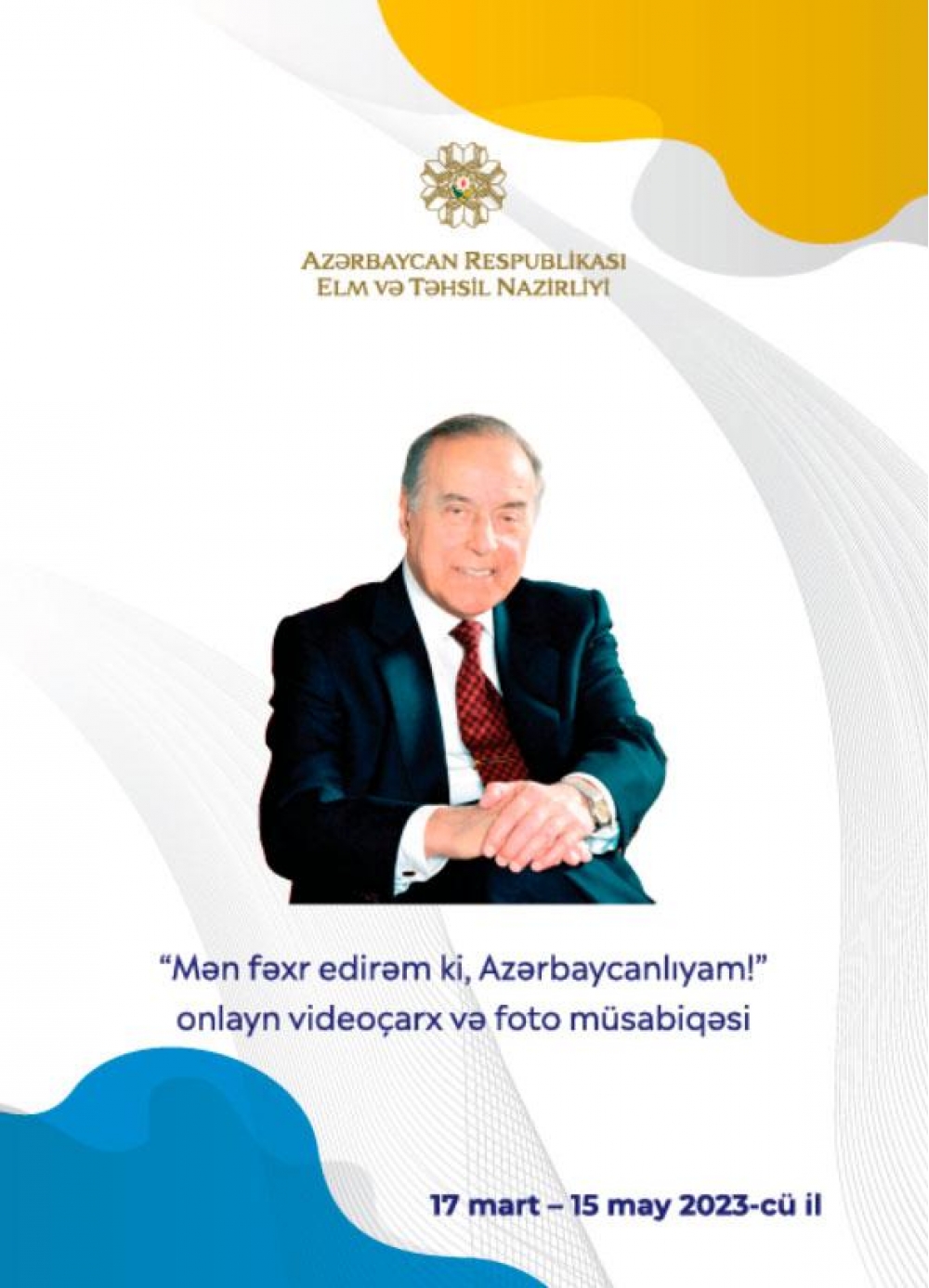 Martın 17-dən Elm və Təhsil Nazirliyinin təşkilatçılığı ilə ümumtəhsil məktəblərinin şagirdləri və uşaq-gənclər inkişaf mərkəzlərinin dərnək üzvləri arasında ümummilli lider Heydər Əliyevin anadan olmasının 100 illiyinə həsr olunmuş “Mən fəxr edirəm ki, azərbaycanlıyam!” adlı videoçarx və foto müsabiqəsinə start veriləcək.