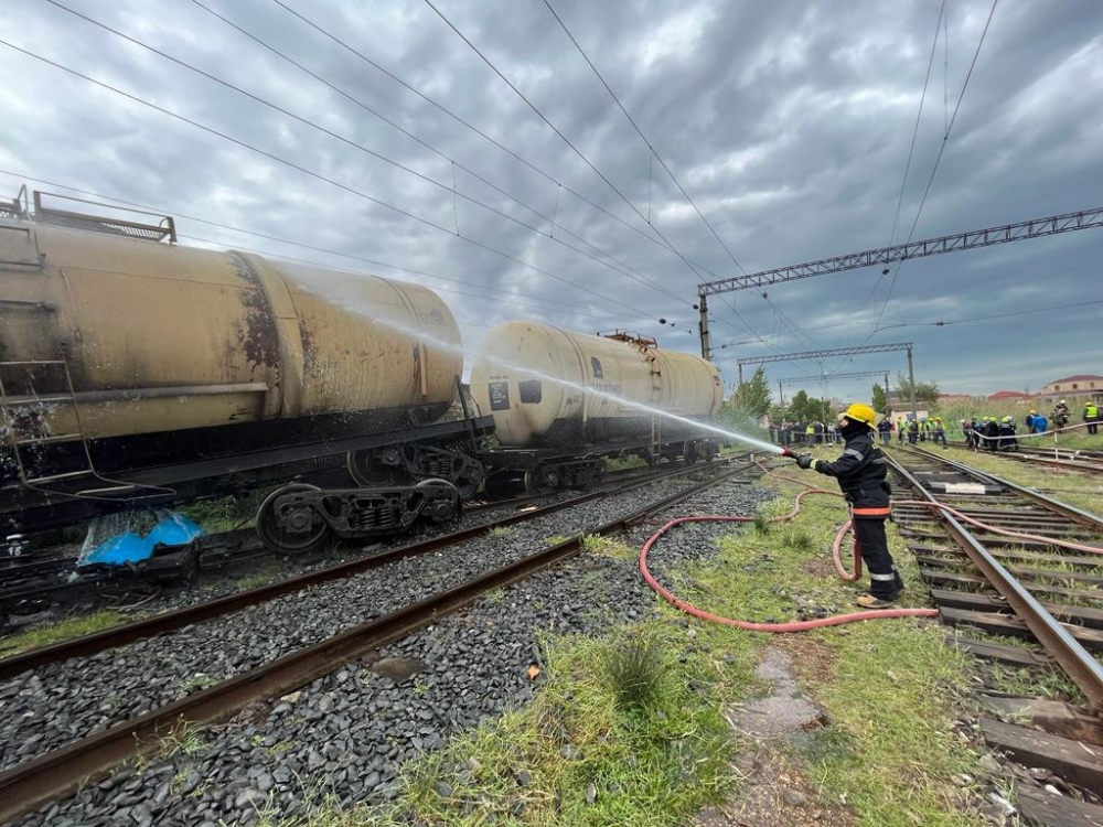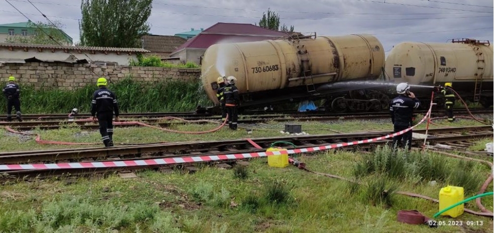 Fövqəladə Hallar Nazirliyinin “112” qaynar telefon xəttinə Bakı şəhəri, Xətai rayonu, Əhmədli qəsəbəsində yanacaqdaşıyan vaqonun relsdən çıxması və yanacağın ətrafa dağılması barədə məlumat daxil olub.