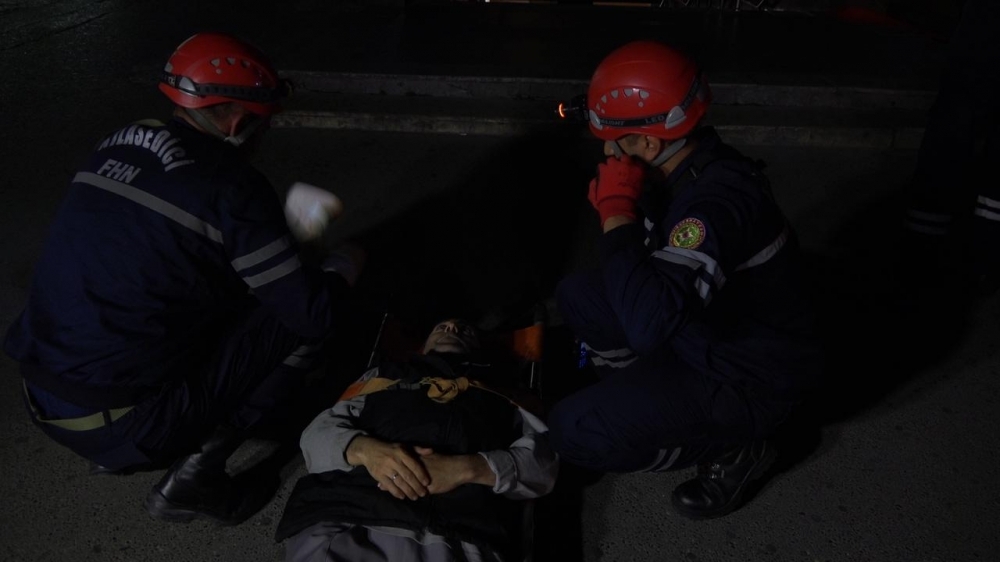 FHN-in mobil yanğın-xilasetmə qrupları tərəfindən fərdi mühafizə vasitələrindən istifadə edilməklə operativ olaraq kəşfiyyat və əməliyyat şəraitinin qiymətləndirilməsi işləri aparılıb, qısa müddətdə şərti yanğın söndürülüb, xilasetmə vasitələri tətbiq edilməklə “zərərçəkmişlər” təxliyə olunaraq onlara “ilkin yardım göstərilib”.