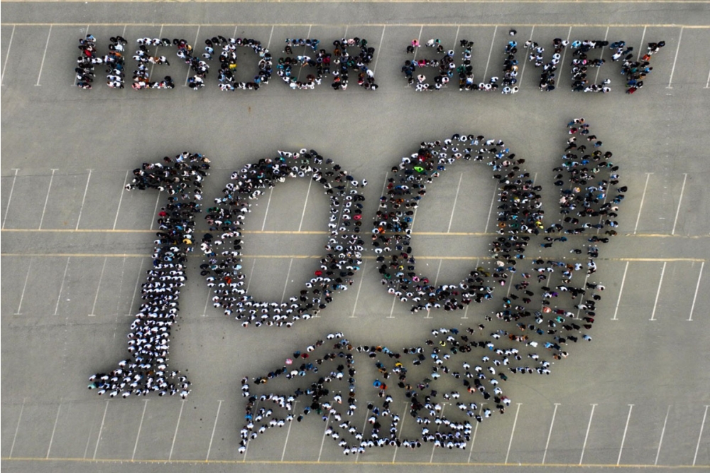 Fləşmobda ulu öndər Heydər Əliyevin adı və 100 illik yubiley simvolundan ibarət kompozisiya yaradılıb.