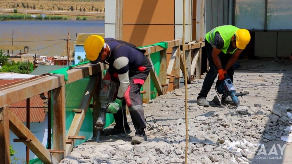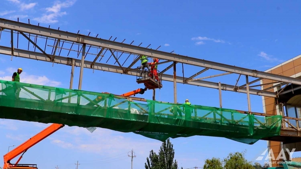 Binəqədidə yerüstü piyada keçidində təmir-bərpa işləri aparılır-
