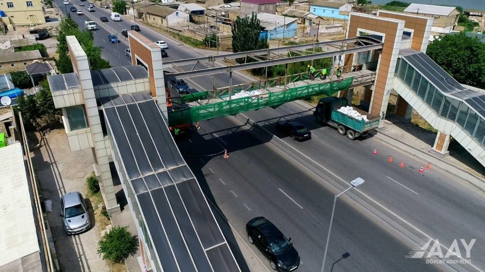 Azərbaycan Avtomobil Yolları Dövlət Agentliyi Bakının Binəqədi rayonundakı Xocəsən–Lökbatan avtomobil yolunun 2-ci km-də yerləşən yerüstü piyada keçidində təmir-bərpa işləri aparır.