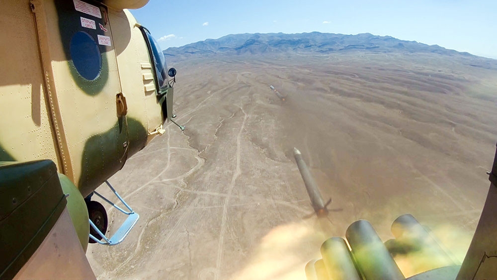 Aviasiya bölmələrinin təlimə hazırlıq məruzələri dinlənildikdən sonra Mİ-17 nəqliyyat-döyüş helikopterlərindən yer hədəflərinə müxtəlif döyüş manevrləri ilə hücum məşq etdirilib.