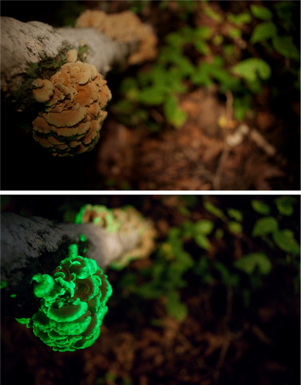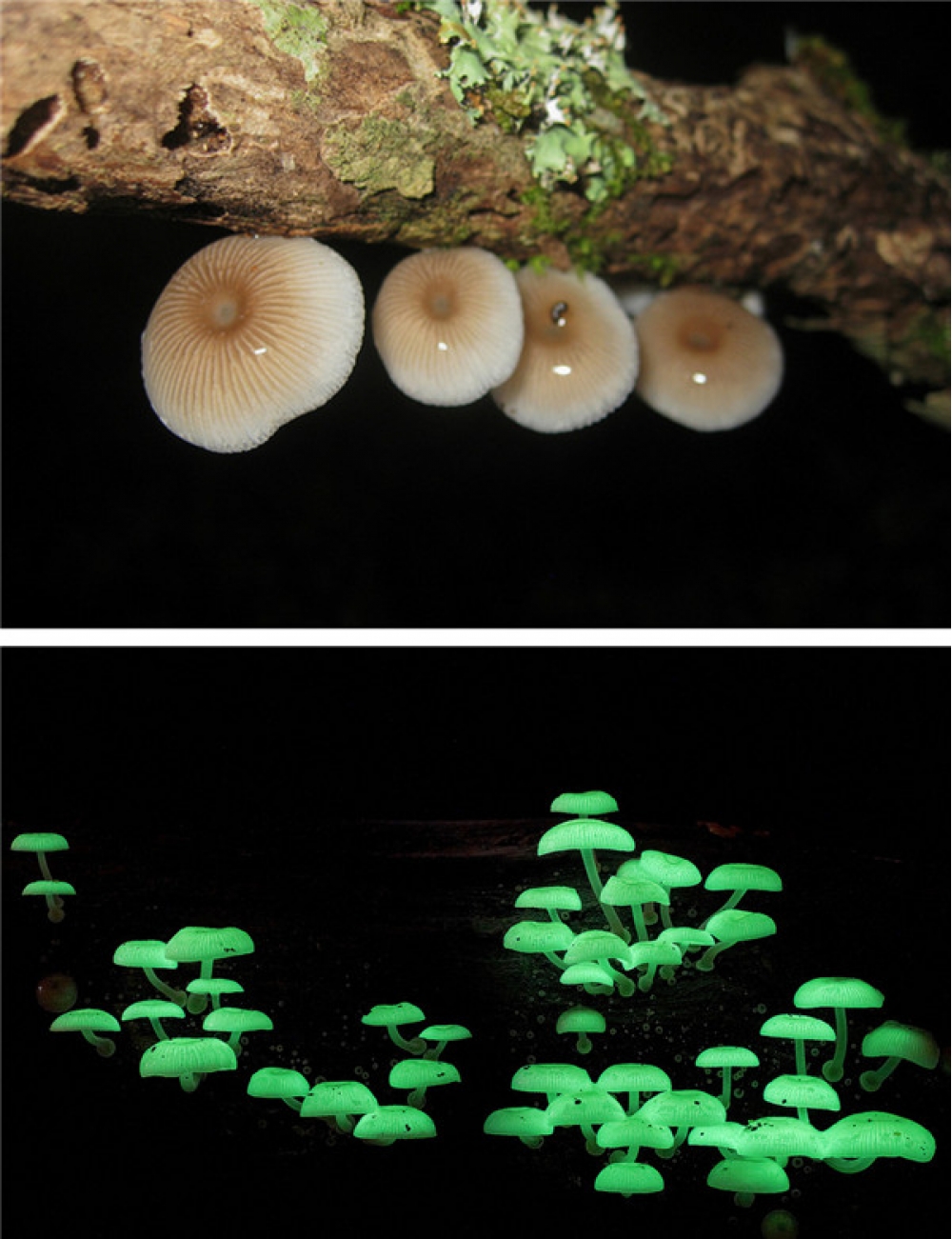 Oxşar parlaq göbələklərə Şimali Amerikanın meşələrində rast gəlmək olar. Orada lusiferin adlı piqmentin oksidləşməsi nəticəsində parlayan 70 növdən çox göbələk bitir.