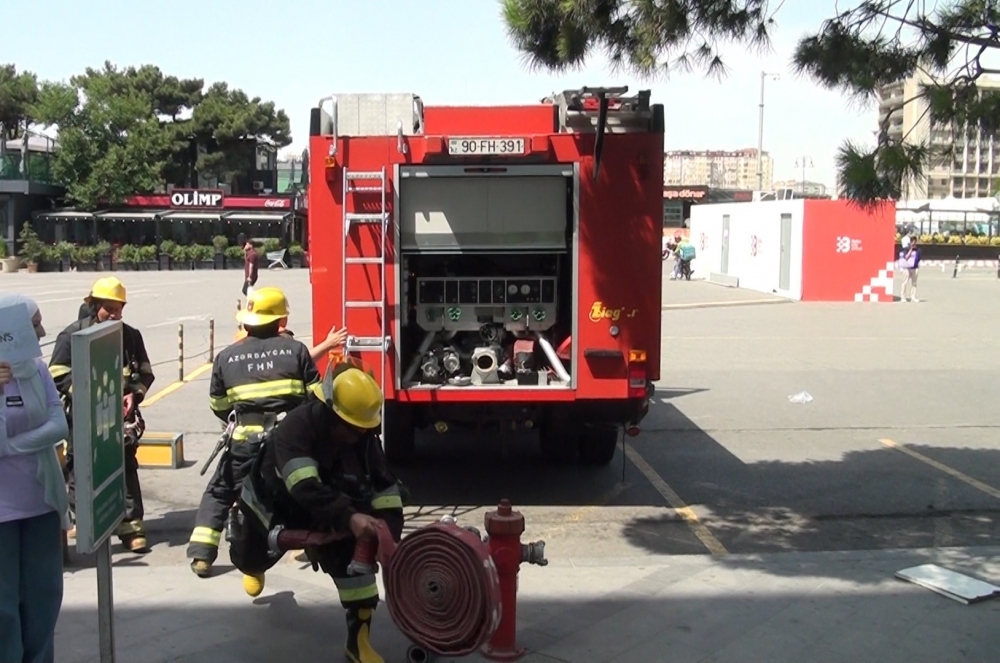 Təlimin praktiki hissəsində şərti yanğın zamanı “Həyəcan” siqnalı verildikdən sonra Dövlət Yanğından Mühafizə Xidməti Nərimanov rayon Yanğından Mühafizə Hissəsinin qüvvələri operativ qaydada hadisə yerinə çataraq, “yanğınla mübarizə” tədbirlərinə başlayıblar. Şərti yanğın baş vermiş ticarət mərkəzində təxliyə planına uyğun olaraq əməkdaşların təhlükəsiz yerə təxliyəsi həyata keçirilib, şərti xəsarət almış əməkdaşlara “ilkin yardım göstərilib”, “yanğın qısa müddətdə söndürülüb”.