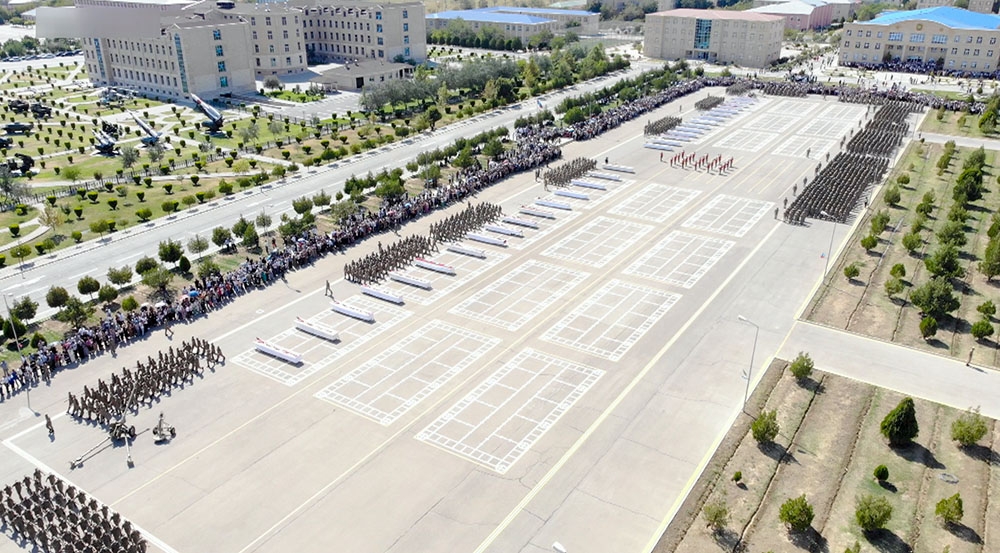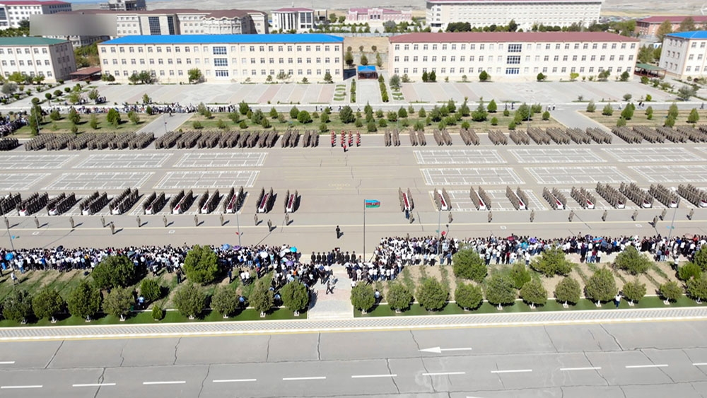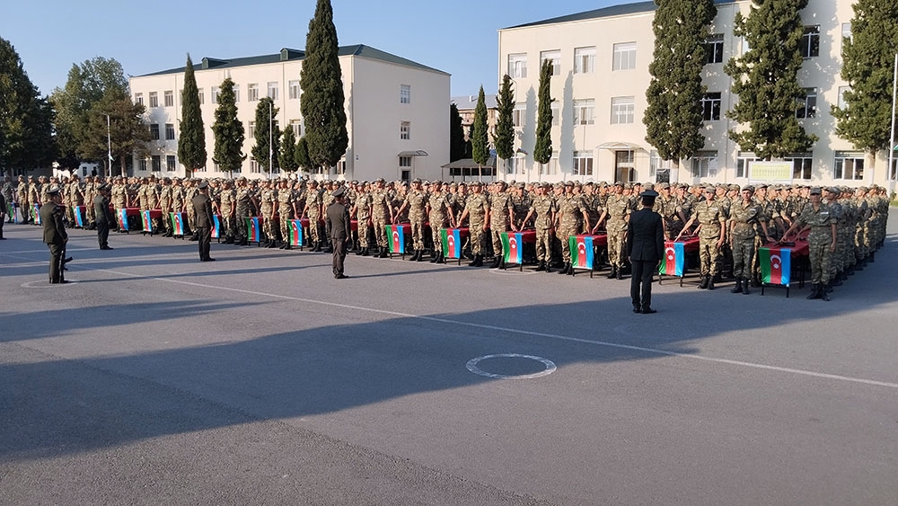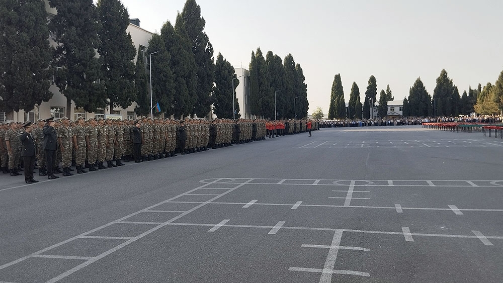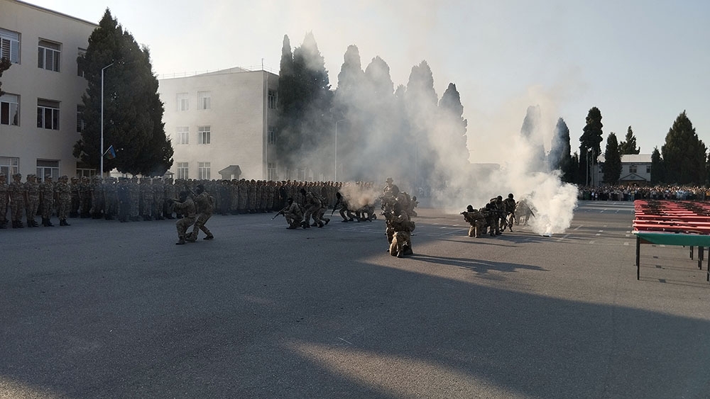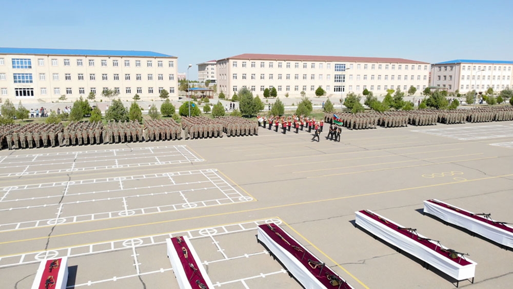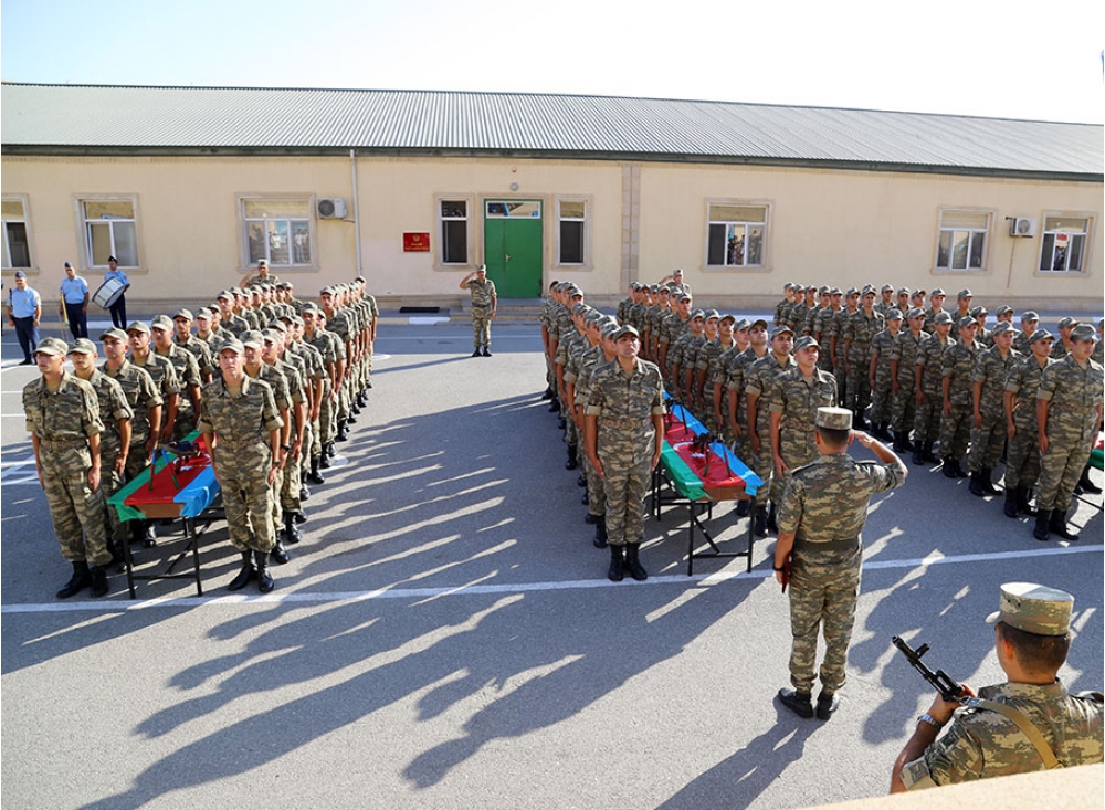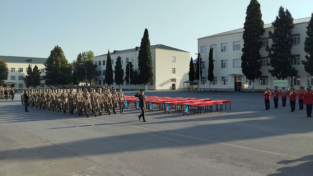 Öncə xalqımızın Ümummilli Lideri Heydər Əliyevin, eləcə də Azərbaycanın müstəqilliyi, ərazi bütövlüyü və suverenliyi uğrunda şəhid olanların xatirəsi bir dəqiqəlik sükutla yad edilib. Sonra gənc əsgərlər təntənəli surətdə Hərbi andı qəbul edərək Vətənə sadiq olacaqlarına söz veriblər.