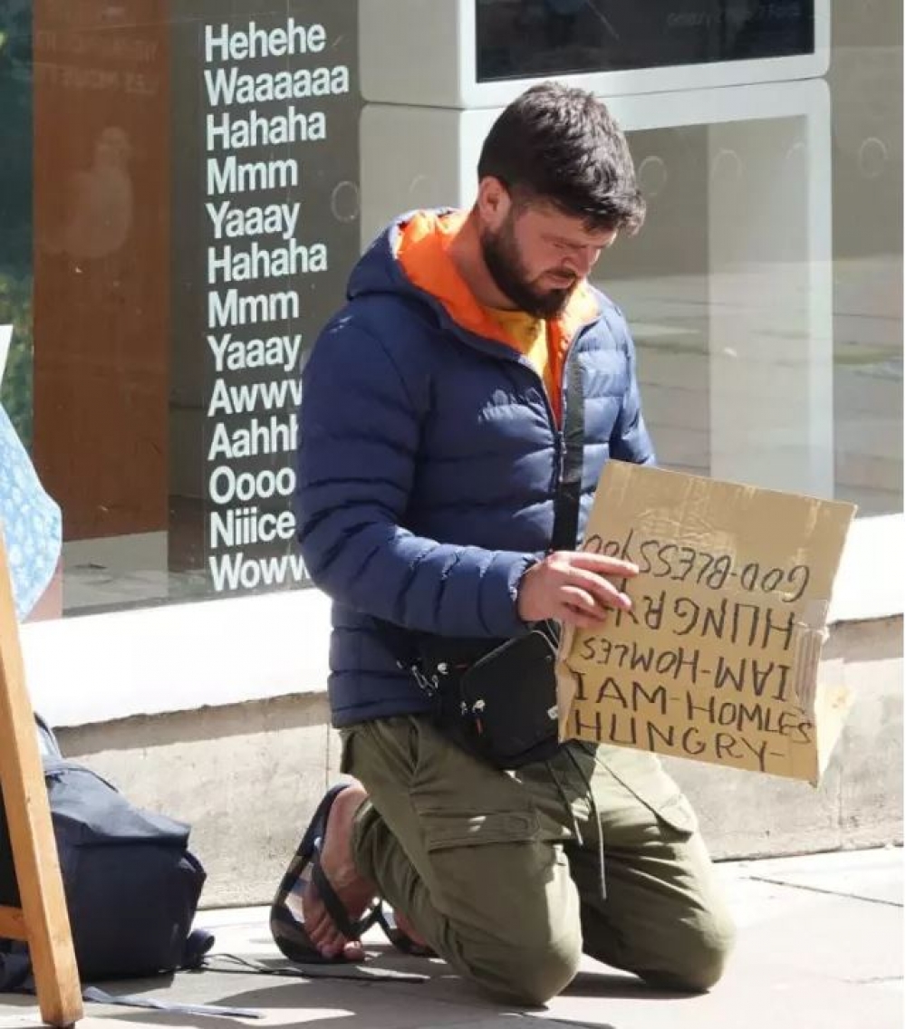 Bildirilib ki, evsiz kimi özlərini qələmə verən dilənçi dəstə 8 saatlıq müddətdə eyni kartonlardan istifadə edərək kömək istəyiblər. Dəstə üzvlərindən birinin hamilə paltarı geyinərək kömək istəməsi, digərinin isə yerdə diz çökərək yalvardığı müşahidə edilib. Dilənçilik etdikdən sonra onlar bir yerə yığışaraq lüks maşınlarla 19 kilometr uzaqlıqdakı Bristola yola düşüblər.