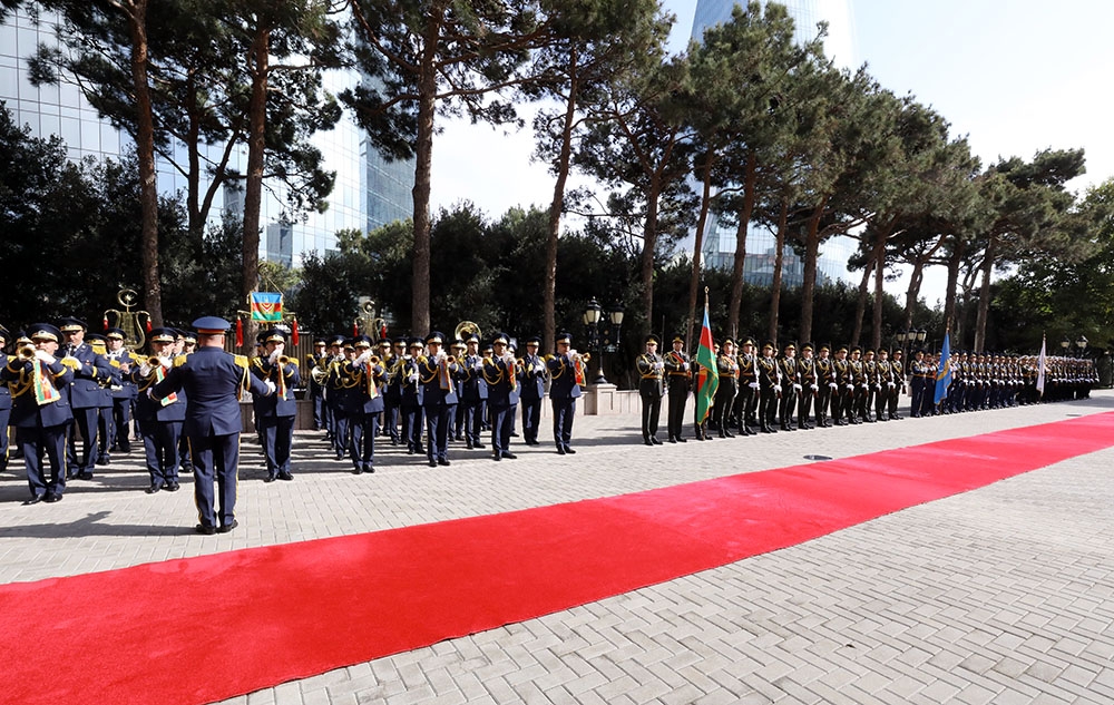 Müdafiə Nazirliyində təntənəli qarşılama mərasimi keçirilib. Fəxri qarovulun önündən keçildikdən sonra hər iki ölkənin dövlət himnləri səsləndirilib. General-polkovnik Ş.Mirzo protokola uyğun olaraq “Şərəf kitabı”nı imzalayıb.