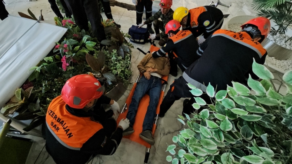 Belə ki, Bakı şəhəri ərazisində baş vermiş şərti zəlzələnin nəticələrinin aradan qaldırılması məqsədilə hadisə yerinə FHN-in Bakı Regional Mərkəzinin və Xüsusi Riskli Xilasetmə Xidmətinin xüsusi təyinatlı texnikaları və şəxsi heyəti ilə yanaşı, xüsusi təlim görmüş itlər, ADY-nin mülki müdafiə qüvvələri, o cümlədən 2 yanğınsöndürən qatar və müvafiq nəqliyyat vasitələri cəlb olunub.
