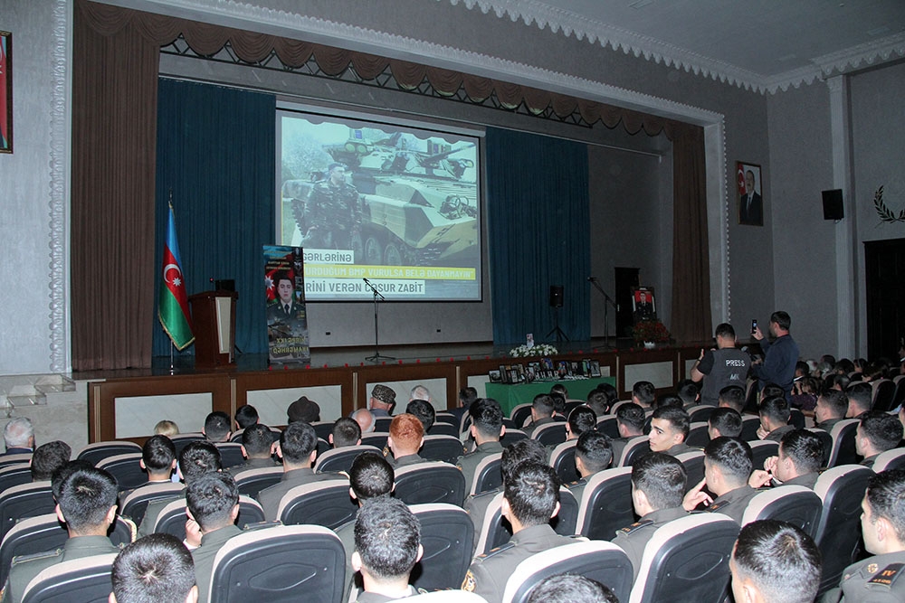 Sonra şəhidlərimizin həyat və döyüş yolundan bəhs edən videoçarxlar nümayiş olunub.