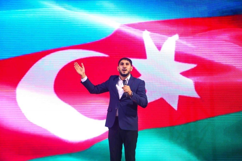 Sonda hərbi vətənpərvərlik mahnılarının mahir ifaçısı, “Vətənpərvərliyin Təbliğinə Dəstək” İctimai Birliyinin sədri Şəmistan Əlizamanlı tamaşaçılara möhtəşəm mahnılarını təqdim etdi.