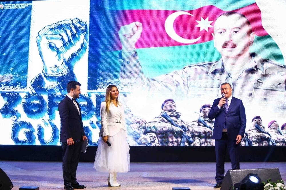 Tamaşaçılar tərəfindən sürəkli alqışlarla qarşılanan Zəfər konserti zamanı səhnədə quraşdırılmış ekranda Prezident, Müzəffər Ali Baş Komandan İlham Əliyevin rəhbərliyi ilə rəşadətli Azərbaycan Ordusunun Vətən müharibəsində qazandığı tarixi Zəfərlə bağlı Xətai Rayon İcra Hakimiyyəti tərəfindən hazırlanmış film nümayiş etdirildi.
