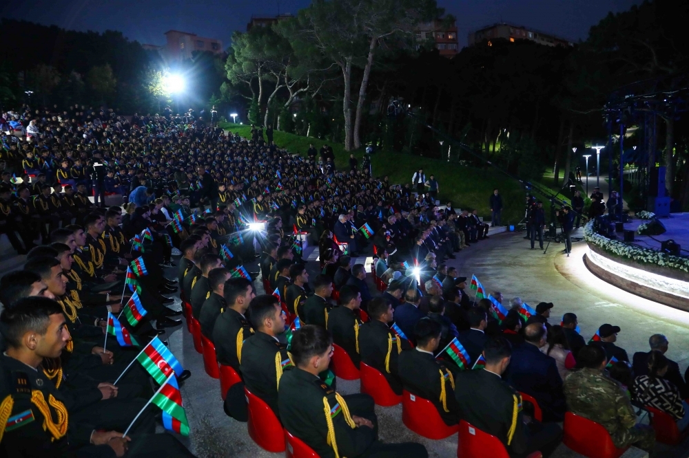 “İki sahil” xəbər verir ki, Xətai Rayon İcra Hakimiyyətinin başçısı Rafiq Quluyev, YAP Xətai rayon təşkilatının sədri Vüqar Rəhimzadə, Milli Məclisin deputatları, rayonun idarə, müəssisə və təşkilat rəhbərləri, şəhid ailələrinin, qazilər, Heydər Əliyev adına Azərbaycan Ali Hərbi Məktəbinin kursantları, ziyalılar və sakinlərin qatıldıqları tədbirdə əvvəlcə torpaqlarımızın bütövlüyü uğrunda canlarını fəda etmiş şəhidlərimizin əziz xatirəsi bir dəqiqəlik sükutla yad edildi, institutun hərbi orkestrinin ifasında Azərbaycan Respublikasının Dövlət himni səsləndirildi.
