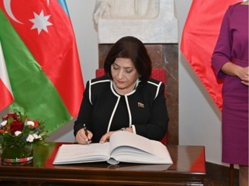 Sonra Milli Məclisin sədri xatirə kitabını imzalayıb.
