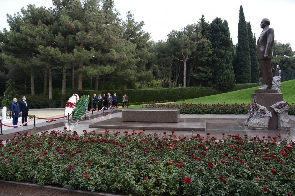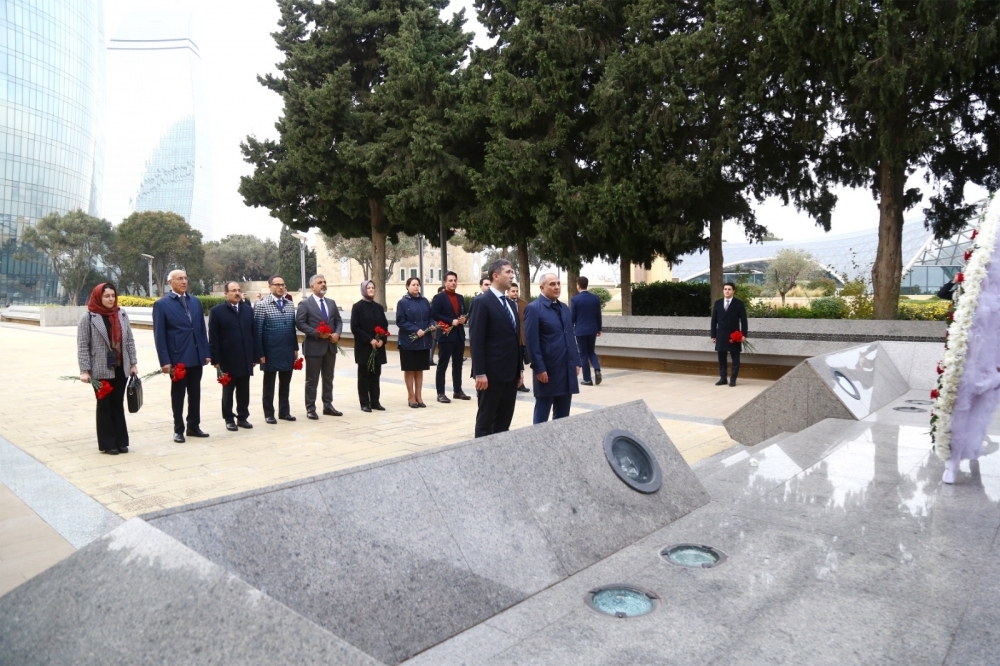 Daha sonra Bakıdakı “Türk şəhidliyi” abidəsi ziyarət edilib. Azərbaycanın istiqlaliyyəti uğrunda canlarından keçən, Azərbaycan-Türkiyə qardaşlığının əbədiliyini, sarsılmazlığını əks etdirən bu məzarlıqda uyuyan qəhrəman və fədakar türk qardaşlarımızın əziz xatirəsi anılıb, abidənin önünə əklil qoyulub, gül dəstələri düzülüb.
