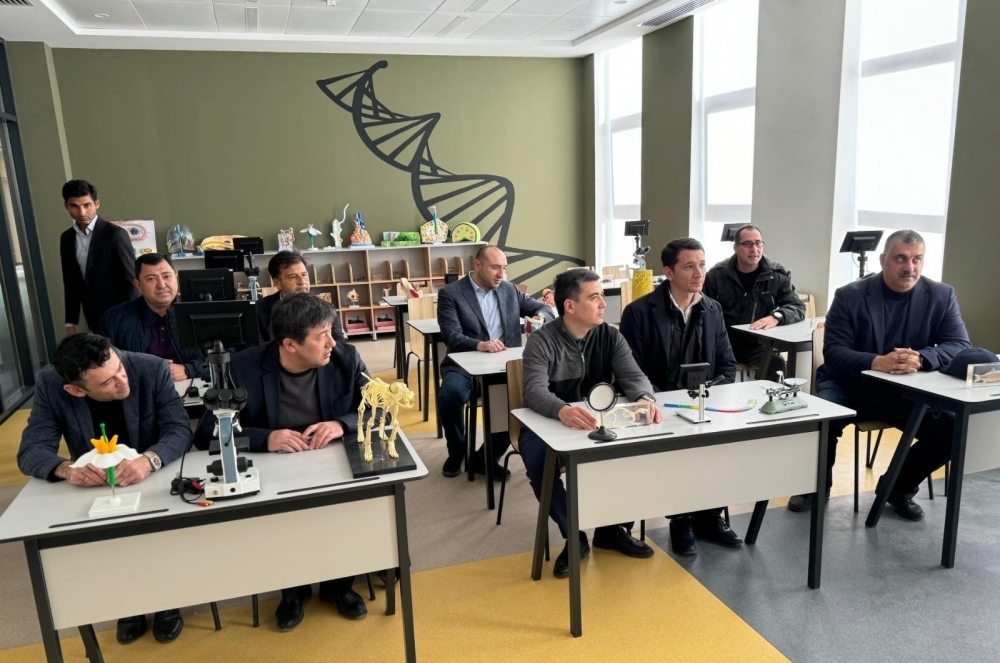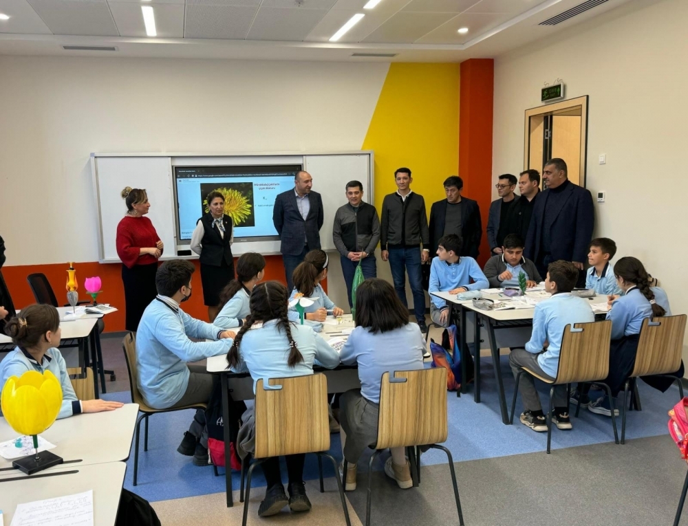Daha sonra qonaqlar Özbəkistan hökuməti tərəfindən inşa edilmiş Mirzə Uluqbəy adına Füzuli şəhər 1 nömrəli tam orta məktəbə gələrək, məktəbdə müəllim və şagird kollektivi üçün yaradılmış şəraitlə yaxından tanış olublar.