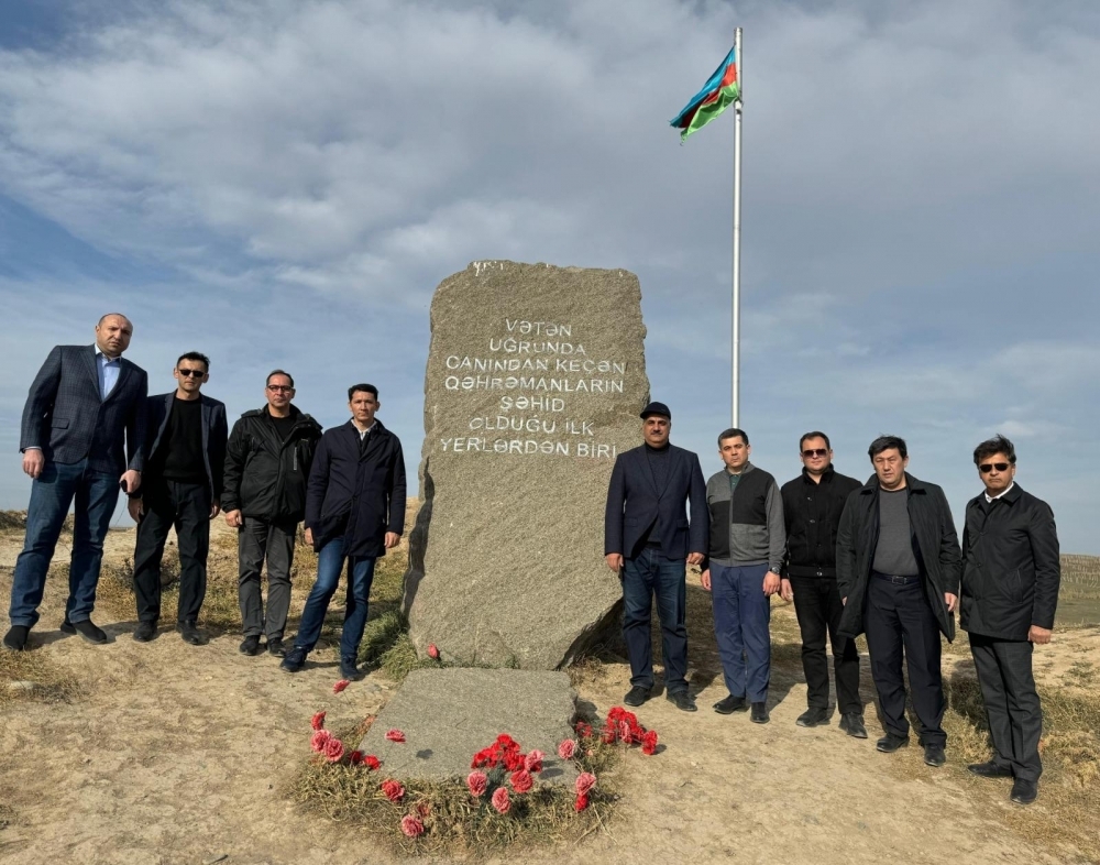 Nümayəndə heyəti Füzuli rayonun işğaldan azad edilməsi uğrunda aparılmış döyüşlər zamanı həlak olan ilk şəhidlərimizin xatirəsinə ucaldılmış abidəni ziyarət ediblər.