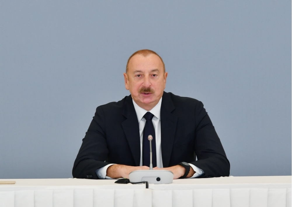 Prezident İlham Əliyev: Bu baxımdan Azərbaycanda vəziyyət sabitdir. Bizim daxili vəziyyətimiz xarici amillərdən asılı deyil. Buna baxmayaraq, sərhədlərimizin xaricində olan vəziyyət həmişə ciddi narahatlıq doğuran bir məsələdir. Bunu həmişə nəzərə almaq lazımdır. Lakin daxili risklər nöqteyi-nəzərindən bizdə daxildə ciddi çağırışlar yoxdur. Sərhədlərimizin lazımi şəkildə müdafiəsi ilə bağlı biz indi müxtəlif layihələri icra edirik, bunlar bizə istənilən potensial riski minimuma endirməyə imkan verəcək. Təşəkkür edirəm.