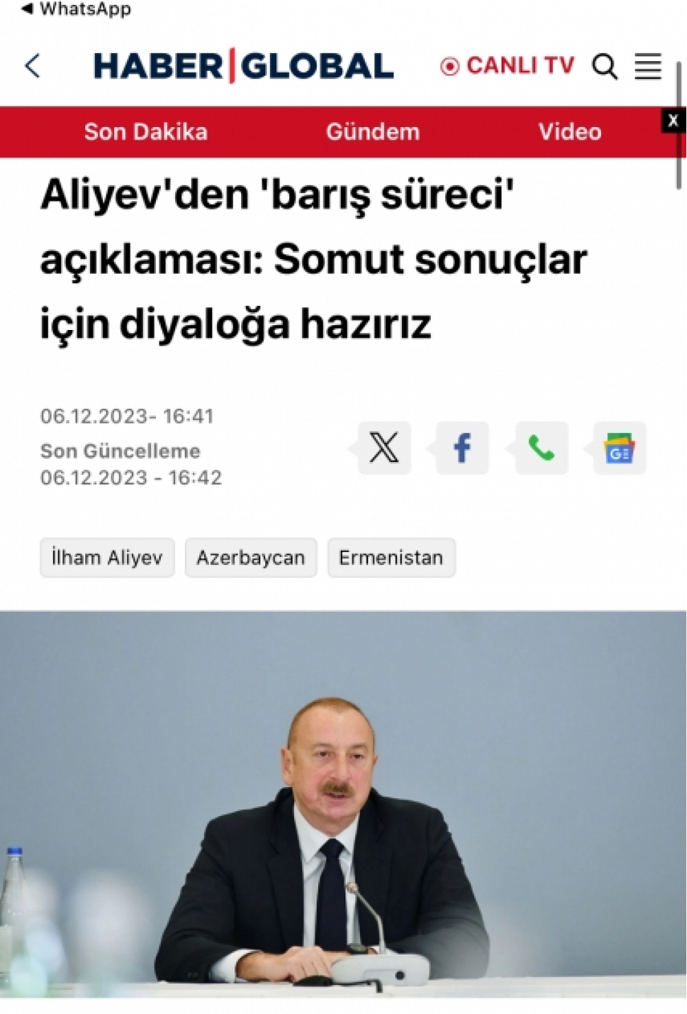 “Haber Global” media qurumunun “Əliyevdən sülh prosesi açıqlaması: Konkret nəticələr üçün dialoqa hazırıq” sərlövhəli geniş yazısı “Ermənistan bölgədə nəqliyyat dəhlizlərinin dirçəldilməsindən yayınır”, “Qarabağı tərk edən ermənilər evlərinə qayıda bilərlər” kimi yarımbaşlıqlarla verilib.