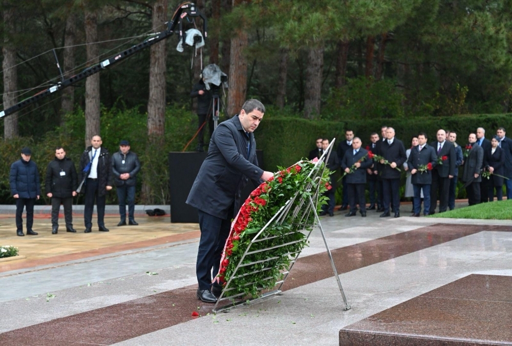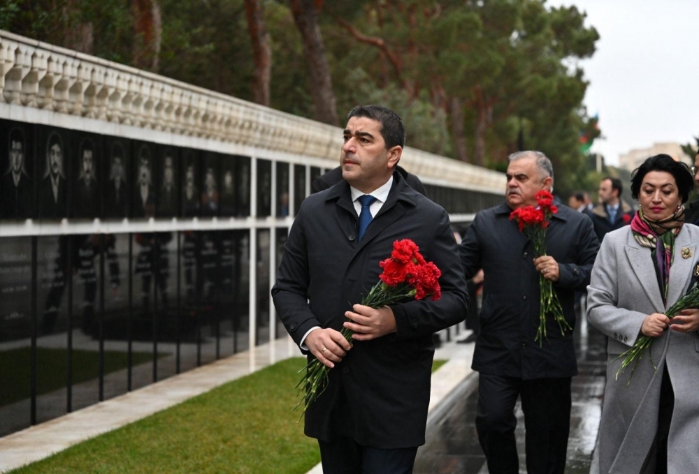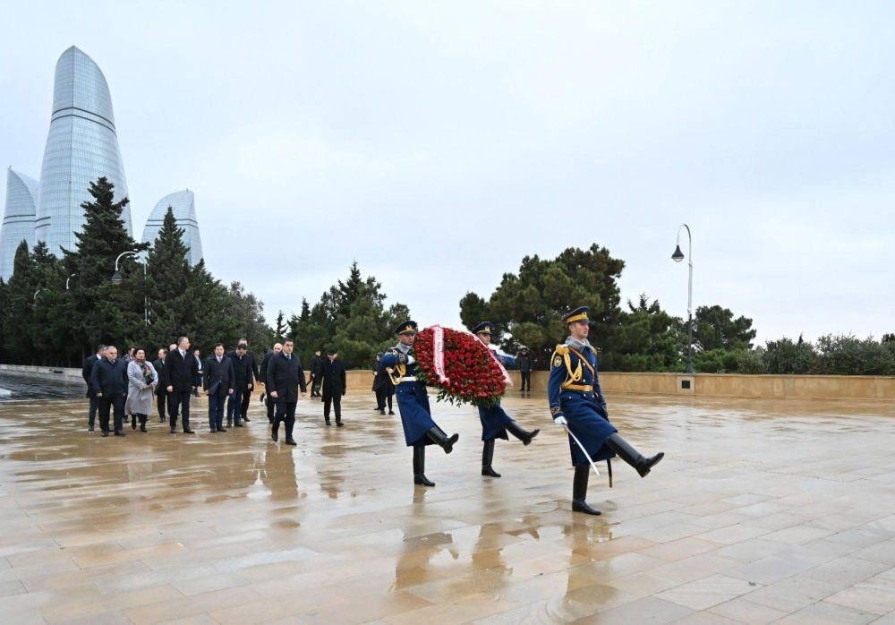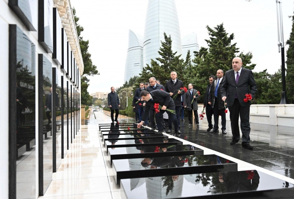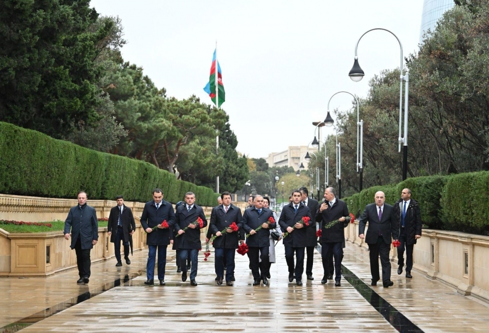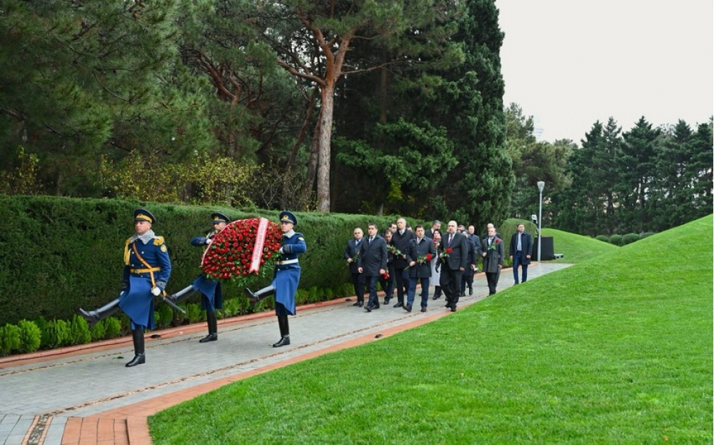 Sonra nümayəndə heyəti Şəhidlər xiyabanını ziyarət edərək, ölkəmizin azadlığı və suverenliyi uğrunda canlarından keçmiş qəhrəman Vətən övladlarının xatirəsini hörmətlə anıb, məzarları üzərinə tər çiçəklər düzüb. Ziyarət zamanı, həmçinin “Əbədi məşəl” abidəsinin önünə əklil qoyulub.