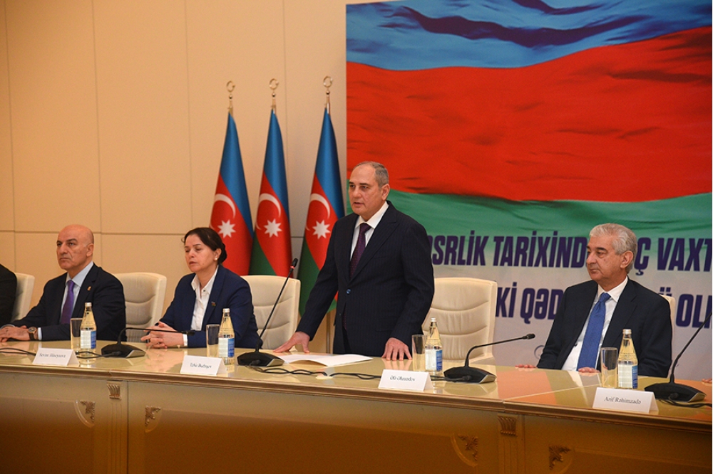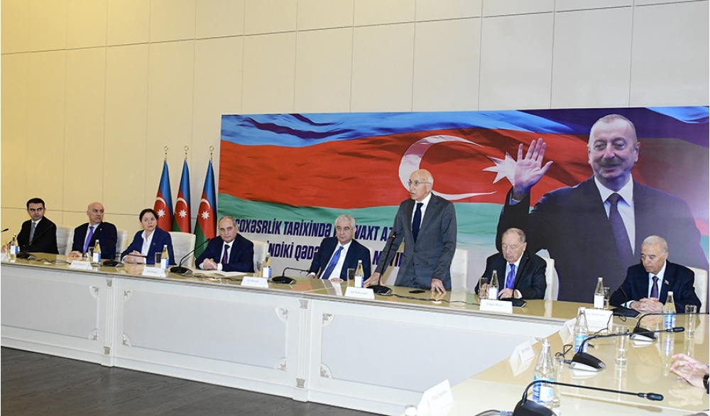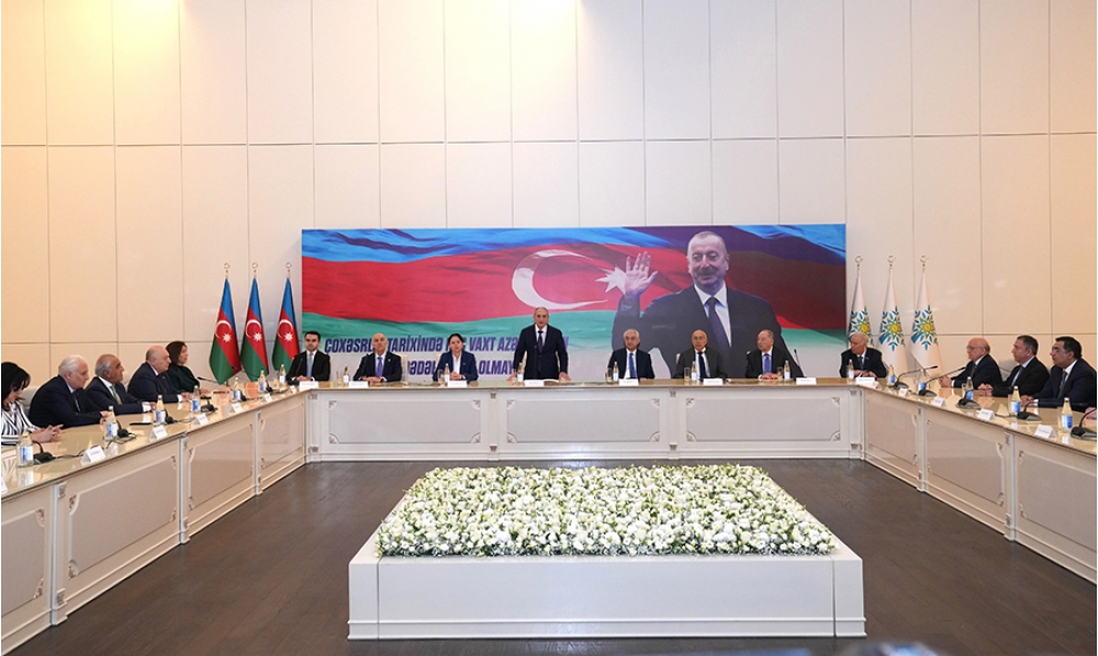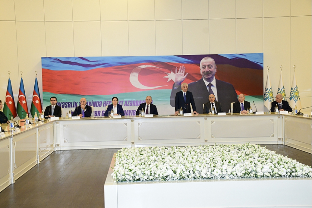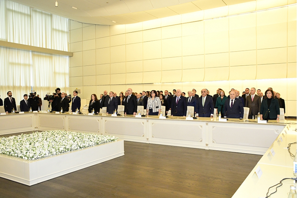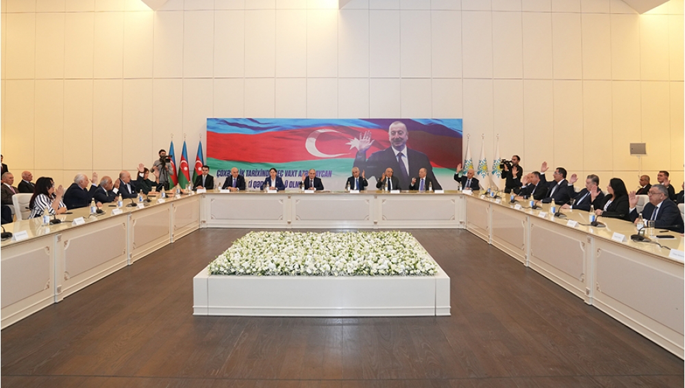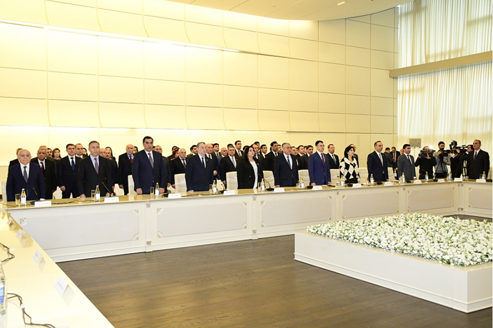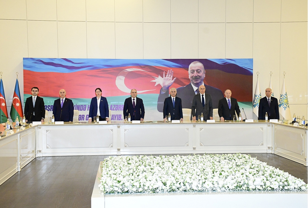 “İki sahil” xəbər verir ki, iclasda əvvəlcə müasir müstəqil Azərbaycan dövlətinin banisi, Yeni Azərbaycan Partiyasının qurucusu, xalqımızın Ümummilli Lideri Heydər Əliyevin və Azərbaycanın ərazi bütövlüyü uğrunda canlarını qurban vermiş şəhidlərin əziz xatirəsi bir dəqiqəlik sükutla yad edilib. Sonra Dövlət Himni səsləndirilib.