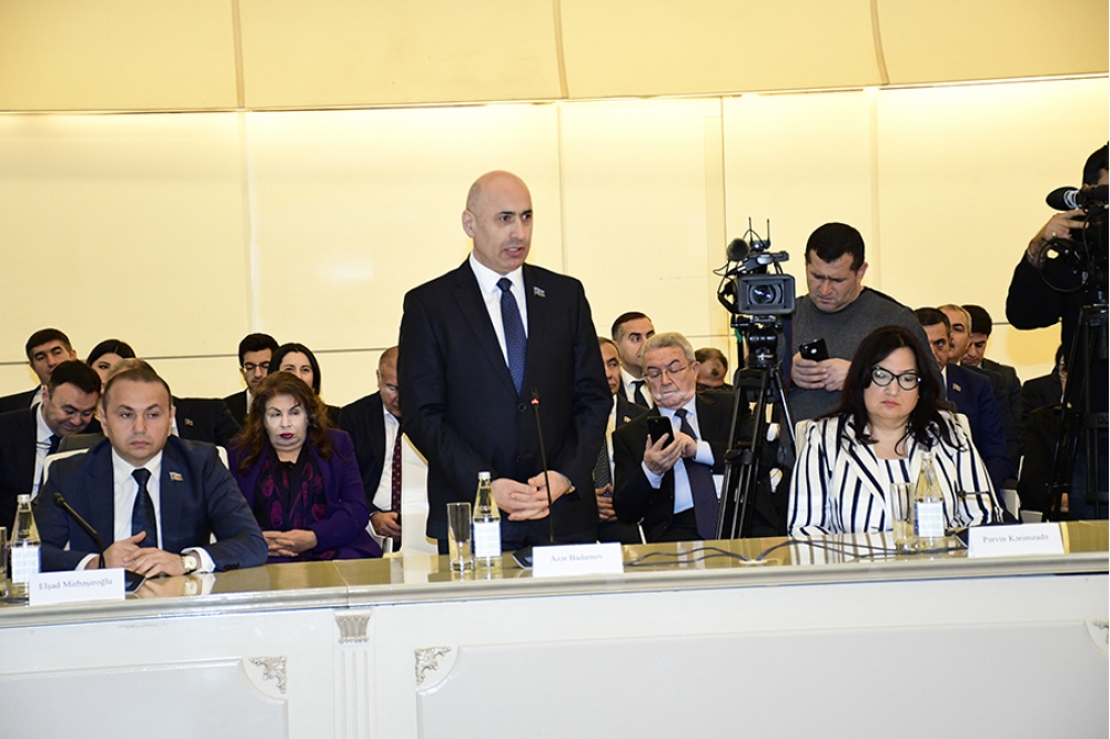Daha sonra Tahir Budaqov iclasın gündəliyi haqqında məlumat verib. Gündəliyə aşağıdakı məsələlər daxil edilib: