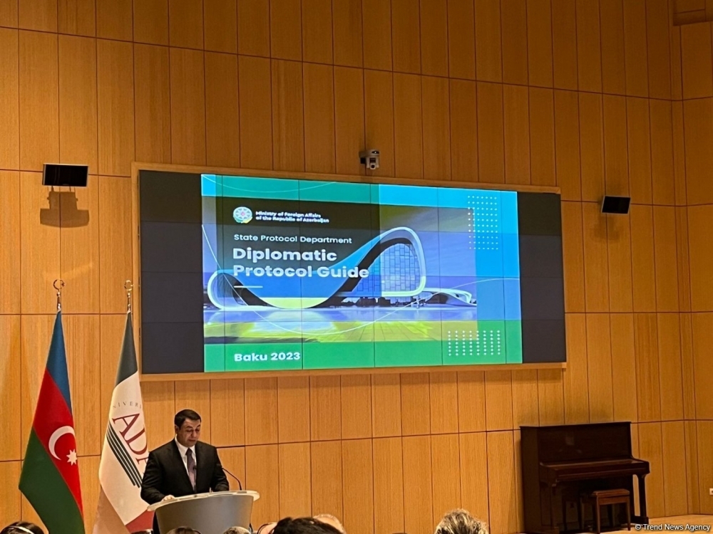 Tədbirdə çıxış edən Xarici İşlər Nazirliyinin Dövlət protokolu idarəsinin rəisi Anar Nəcəfli Azərbaycan Respublikasında akkreditə olunmuş xarici ölkələrin və beynəlxalq təşkilatların diplomatik missiya üzvlərinin immunitet və imtiyazlarının əks olunduğu “Diplomatik Protokol Bələdçisi” barədə məlumat verib.