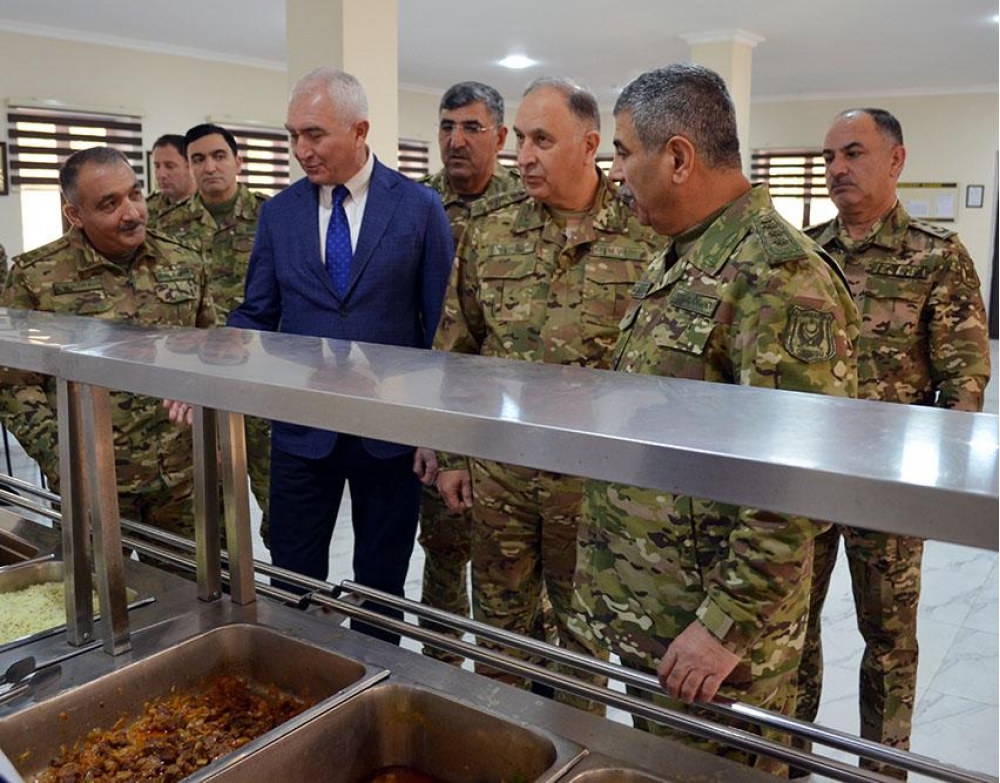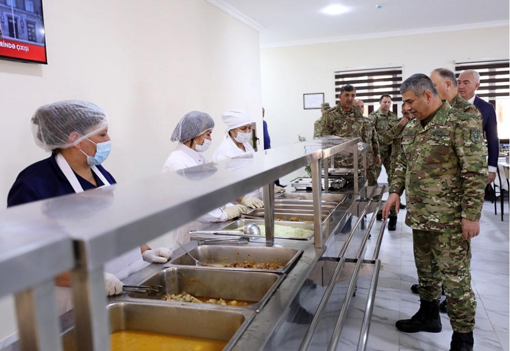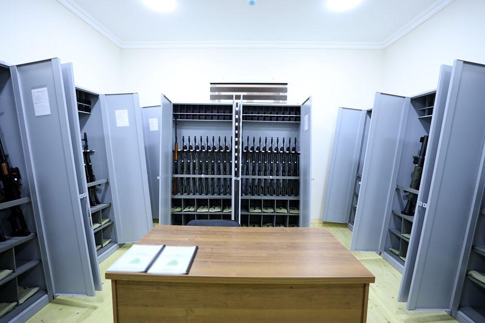 Hərbi hissədə yaradılan şəraitlə maraqlanan müdafiə nazirinə məruzə edilib ki, burada silah otağı, yataqxana, yeməkxana, mətbəx, ərzaq və əşya anbarları, hamam-sanitar qovşağı, camaşırxana-qazanxana və ərazinin fasiləsiz elektrik enerjisi ilə təmin olunması məqsədilə generatorlar mövcuddur.