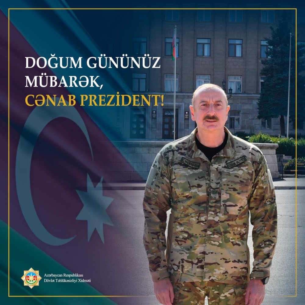 "Möhtərəm cənab Prezident! Sizi doğum gününüz münasibətilə təbrik edir, müzəffər sərkərdəliyiniz altında ərazi bütövlüyünü və suverenliyini tam bərpa etmiş müasir Azərbaycanı ardıcıl zəfərlərə doğru aparan ali dövləti fəaliyyətinizdə yeni-yeni nailiyyətlər diləyirik!"