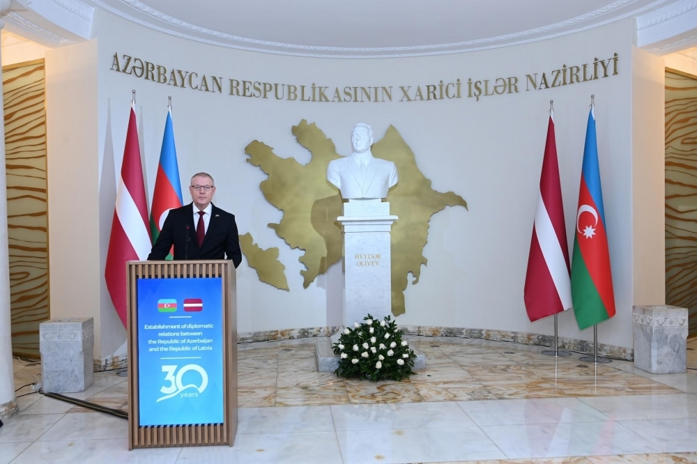 Tədbirdə çıxış edən Azərbaycan Respublikasının xarici işlər nazirinin müavini Fariz Rzayev iki ölkə arasında diplomatik münasibətlərin qurulmasının 30-cu ildönümü münasibətilə təbriklərini çatdırıb. Azərbaycan və Latviya arasında mövcud strateji tərəfdaşlıq münasibətlərinin 30 il ərzində müxtəlif, o cümlədən siyasi, iqtisadi, humanitar, elmi-texniki, mədəni və s. istiqamətlər üzrə inkişafından ətraflı bəhs olunub. Ali və yüksək səviyyəli səfərlər və təmasların, habelə Strateji Dialoqun ötən il Bakı şəhərində keçirilmiş ikinci iclasının əməkdaşlığın genişləndirilməsində əhəmiyyətli rol oynadığı qeyd edilib.