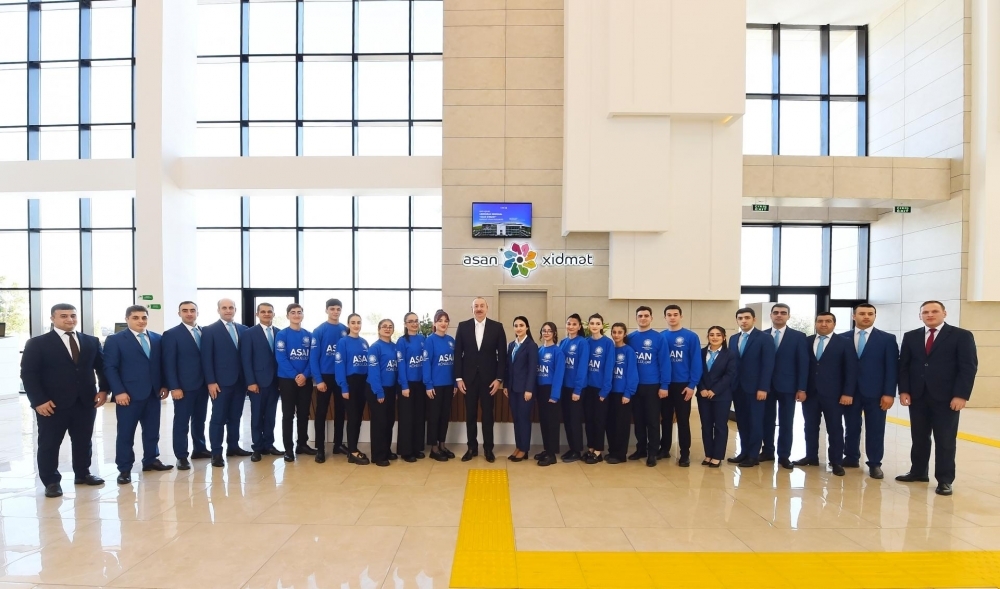 Dövlət başçısına Lənkəran “ASAN xidmət” mərkəzində tətbiq olunacaq innovativ yeniliklər - İntellektual məhsul ixracı, Etimad Fondu, Dövlət Xidmətlərinin Akselerasiya Mərkəzi, Universal operator, Süni intellekt əsaslı xidmətlər və smart qolbaq barədə məlumat verilib. İşğaldan azad olunmuş ərazilərdə “ASAN xidmət”lə əlaqədar bildirilib ki, mərkəzlərin qurulması üçün Dövlət Agentliyi tərəfindən 7 rayonda təhlillər aparılıb. Təhlillər nəticəsində proqnozlaşdırılan müraciət sayı və əlverişli coğrafi mövqeyə uyğun olaraq Ağdam, Laçın və Cəbrayıl rayonlarında “ASAN xidmət” mərkəzlərinin qurulmasının məqsədəuyğunluğu müəyyənləşdirilib. Eyni zamanda hazırda Şuşa şəhərində də “ASAN xidmət”in binasının inşası davam etdirilir.