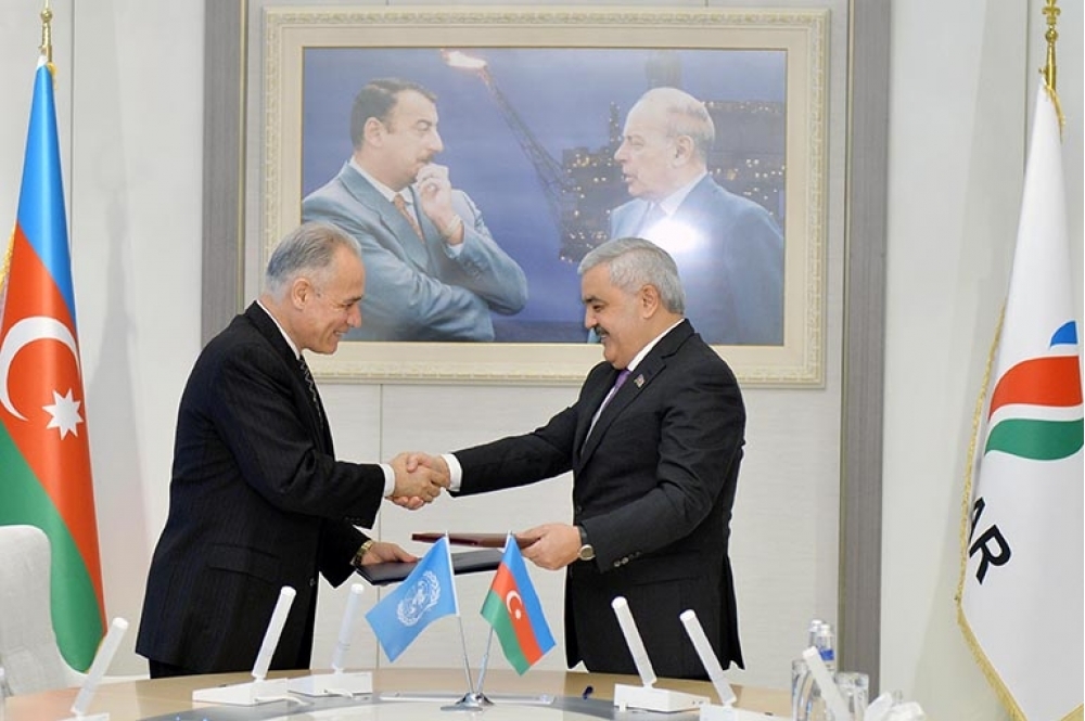Birləşmiş Millətlər Təşkilatının İnkişaf Proqramı (BMTİP) ilə SOCAR arasında imzalanan sənəd iqlim dəyişmələri, enerji səmərəliliyi, atmosferə atılan karbon qazının azaldılması və ümumən ətraf mühitin qorunması istiqamətlərində iki qurum arasındakı əməkdaşlıq imkanlarını genişləndirəcək.Martın 6-da SOCAR TOWER-də Azərbaycan Respublikası Dövlət Neft Şirkəti və Birləşmiş Millətlər Təşkilatının Inkişaf Proqramı (BMTİP) arasında ətraf mühitin qorunması sahəsində əməkdaşlığı davam etdirmək məqsədi ilə Niyyət Protokolu imzalanmışdır. Sənədi SOCAR-ın prezidenti Rövnəq Abdullayev və BMT-nin Rezident Əlaqələndiricisi Qulam İsakzai imzalamışlar. SOCAR və BMTİP ortaq maraq kəsb edən sahələrdə - iqlim dəyişmələri, enerji səmərəliliyi, atmosferə atılan karbon qazının azaldılması və ümumən ətraf-mühitin qorunması sahələrində birgə layihələr keçirmək və mövcud əməkdaşlığı davam etdirmək istəklərini bəyan etdilər.
