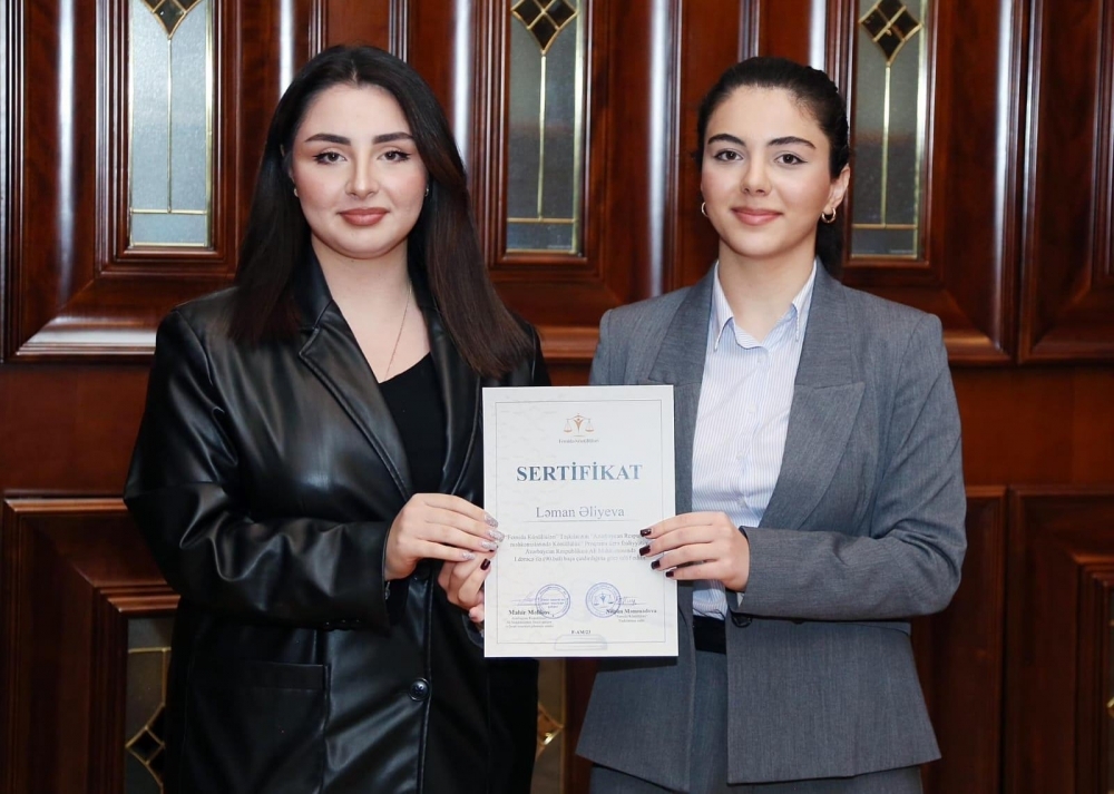 Sonra məzun olan "Femida" könüllüləri sertifikatlarla təltif ediliblər.