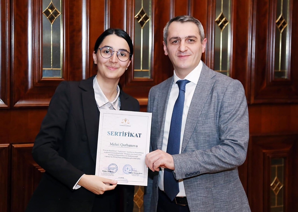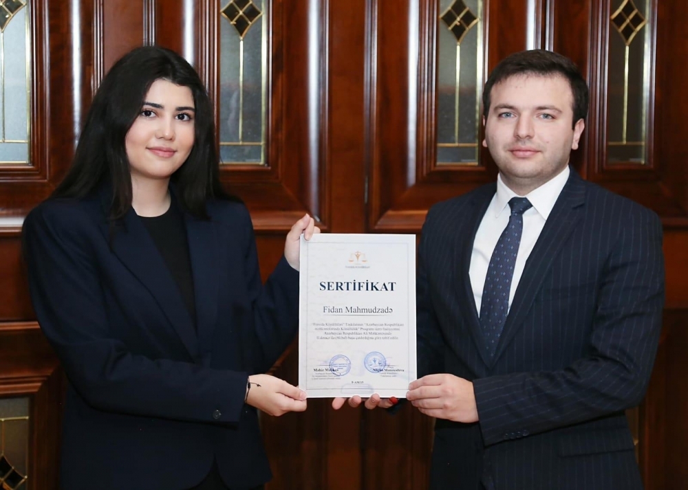 Ali Məhkəmədə fəaliyyətlərini uğurla başa vuran "Femida" könüllülərinə sertifikatların təqdimetmə mərasimi keçirilib.