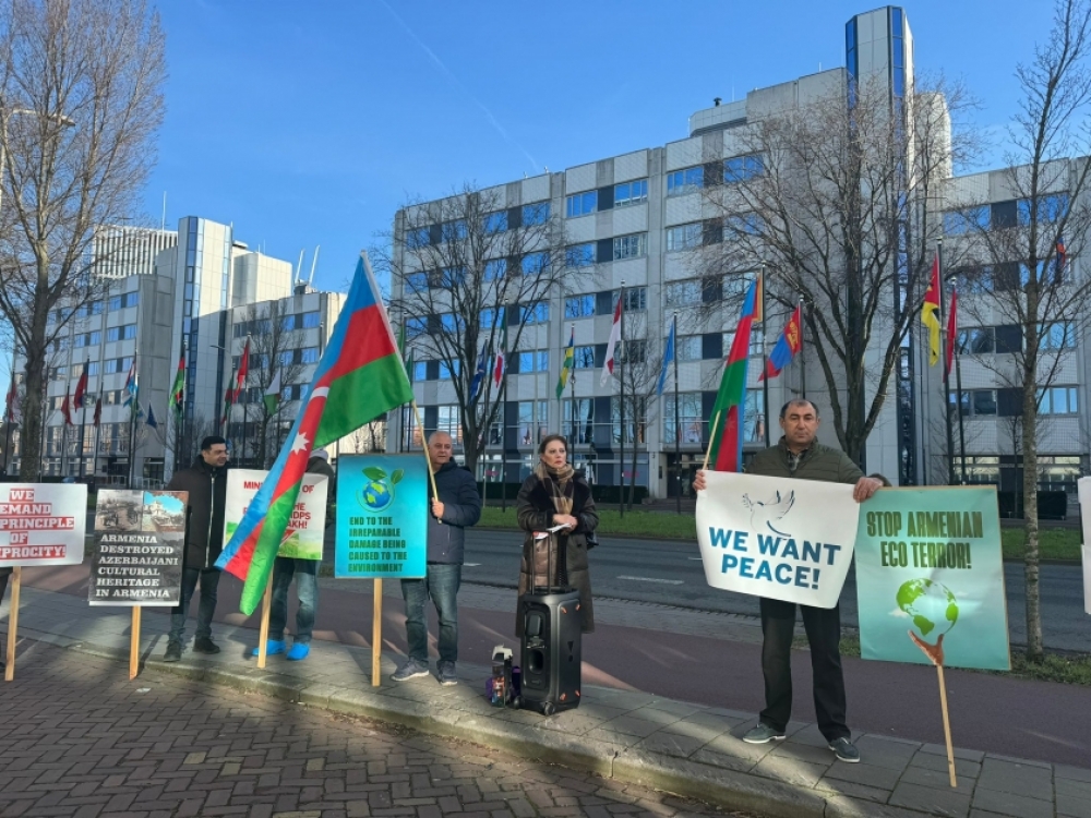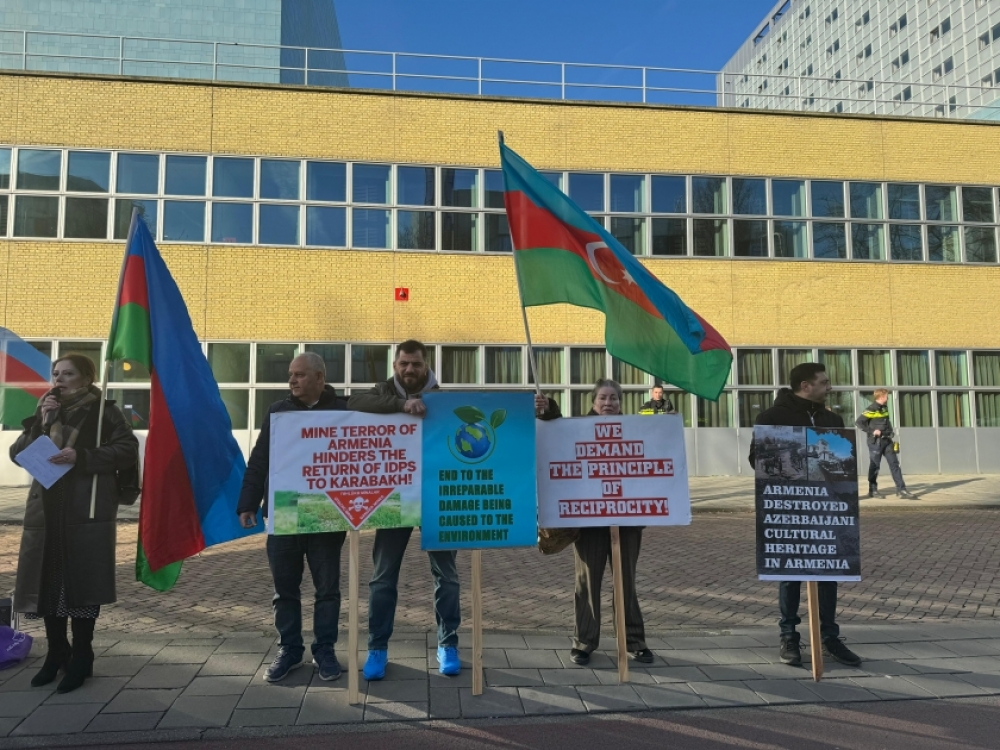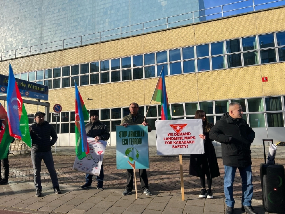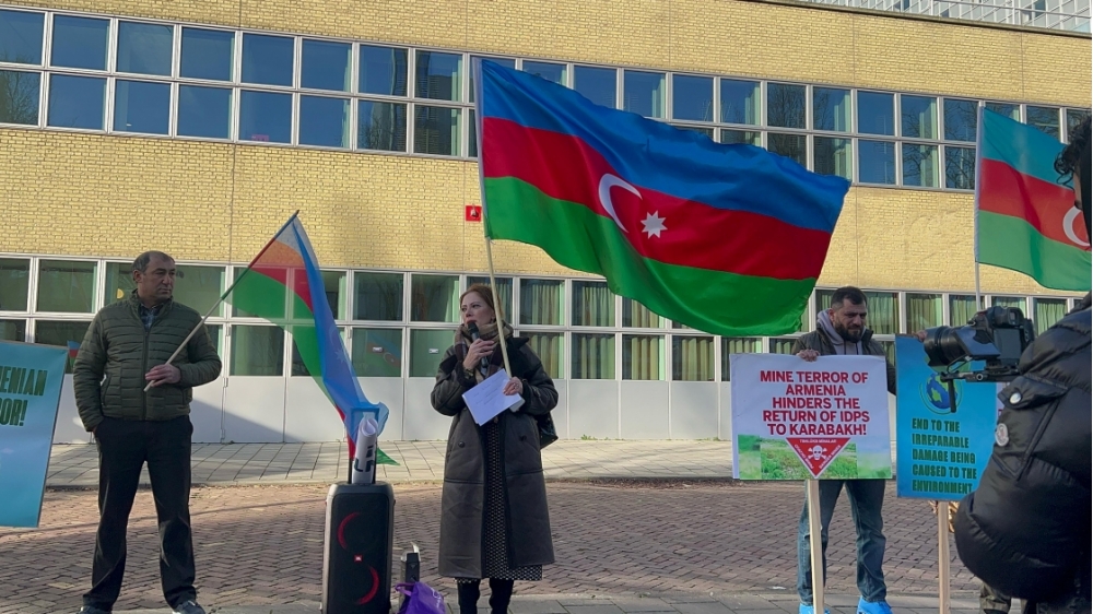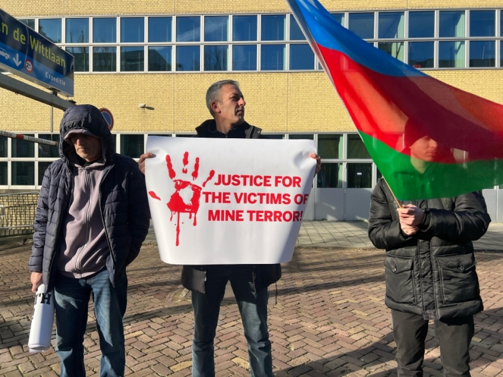 Haaqada Ermənistan səfirliyi qarşısında toplaşmış aksiya iştirakçıları “Ermənistanın minaları mülki şəxsləri öldürür”, “Azərbaycan sülh, Ermənistan müharibə istəyir”, “Ermənistan sülh seçimin rədd edir” kimi şüarlar yazılmış plakatlar qaldırıb, İrəvanı sülhü dəstəkləməyə, mina xəritələrinin verməyə çağırıblar.