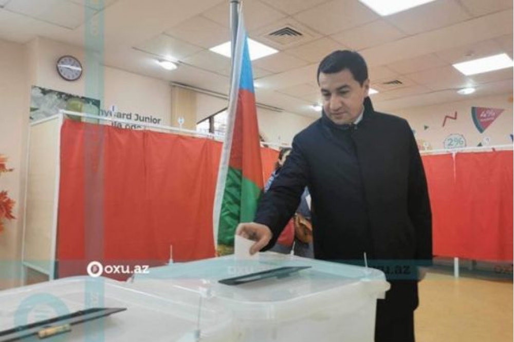 Azərbaycan Prezidentinin köməkçisi - Prezident Administrasiyasının Xarici siyasət məsələləri şöbəsinin müdiri Hikmət Hacıyev də məntəqəyə gələrək səsvermə hüququndan istifadə edib.