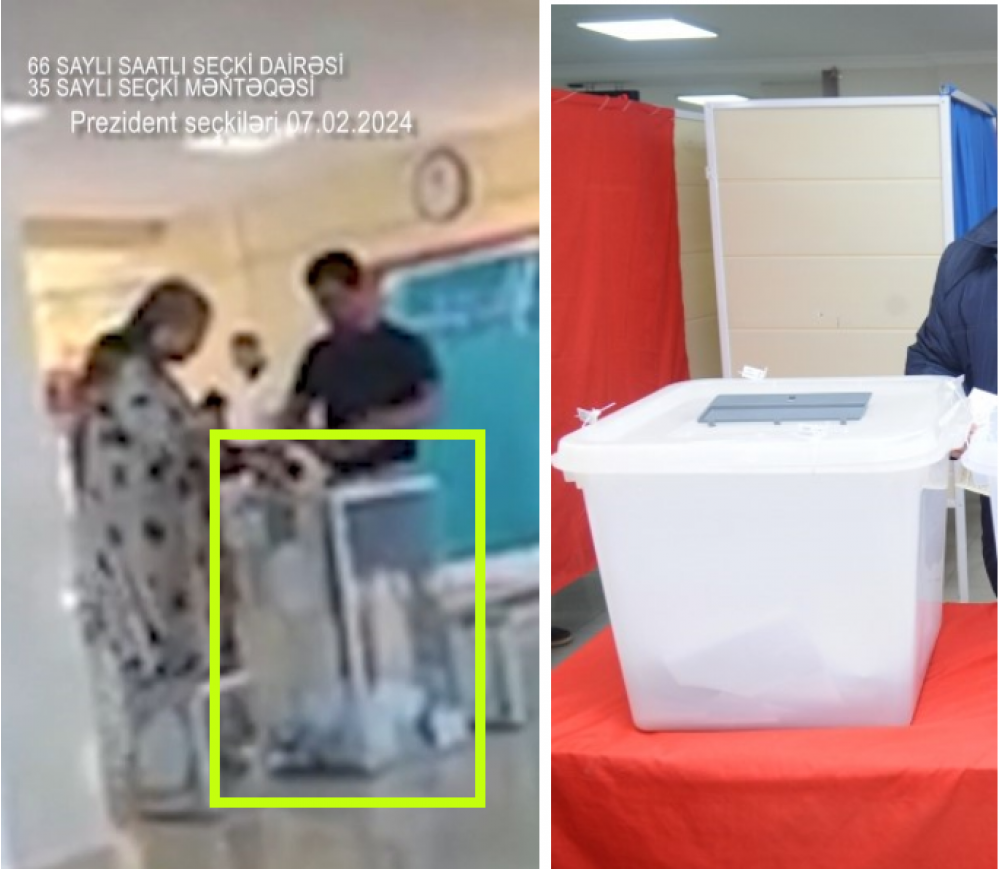 “İki sahil” xəbər verir ki, kadrlarda bir gənc oğlanla, yaşlı qadının seçki qutusuna çox sayda bülleten atdığı əks olunub.