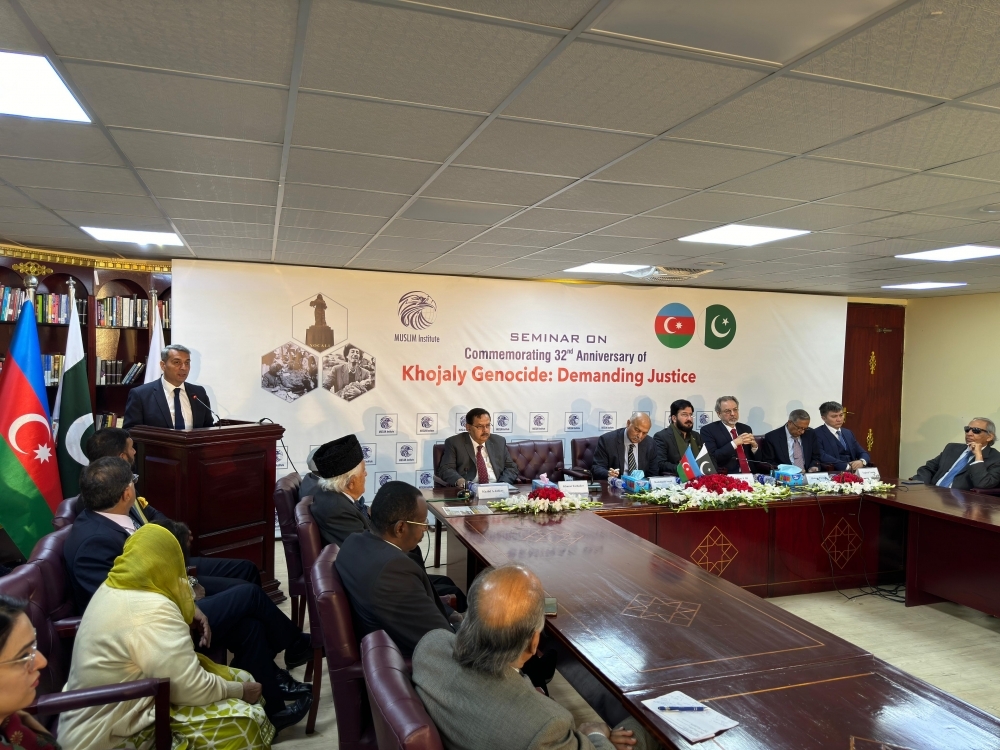 Azərbaycan Respublikasının Pakistandakı səfirliyi bu ölkənin aparıcı beyin mərkəzlərindən olan Müslüm İnstitutu ilə birgə Pakistan Milli Kitabxanasında Xocalı soyqırımının 32-ci ildönümünə həsr olunan seminar təşkil edib.