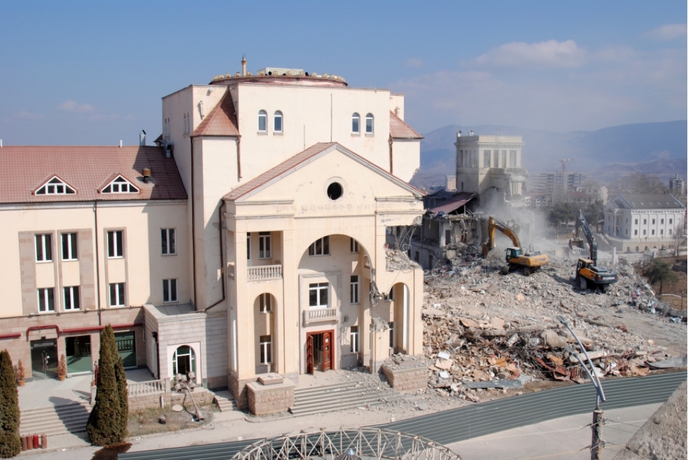 Ermənistanın tarixi Azərbaycan torpaqlarında saxtalaşdırma siyasətinin nəticələri aradan qaldırılmaqdadır. Xankəndidə separatçı rejimə məxsus qondarma parlament binasının, eləcə də erməni terrorçular üçün inşa edilmiş “veteranlar binası”nın sökülməsi də saxta izlərin Qarabağdan silinməsidir. Çünki 30 illik işğal dövründə Azərbaycana məxsus ərazilərdə tarixi-dini-mədəni irs məhv edilib, ekosid, urbisid, demoqrafik tərkibin məqsədli şəkildə dəyişdirilməsi siyasəti aparılıb.