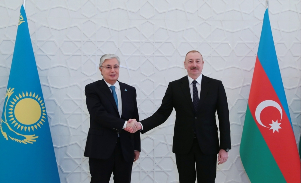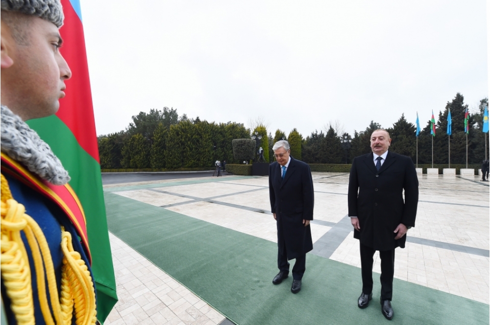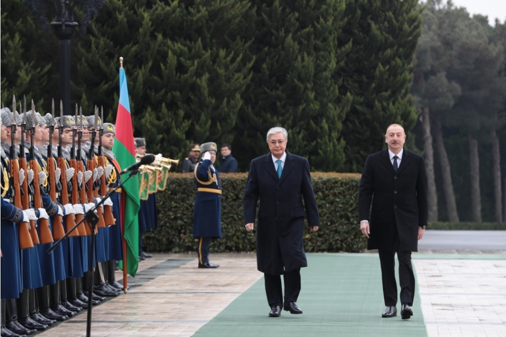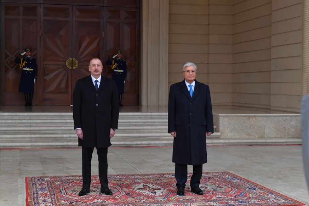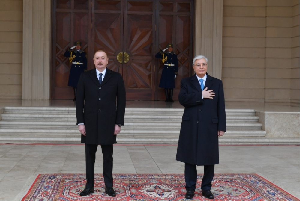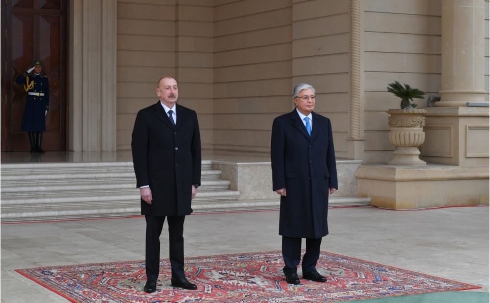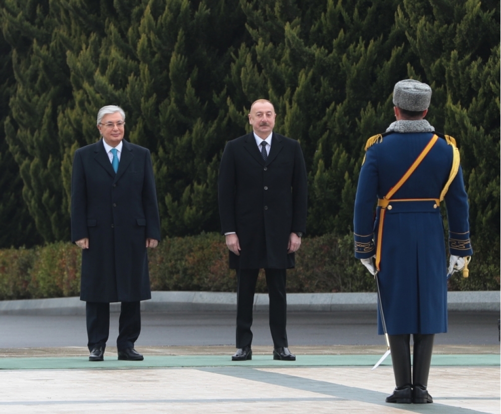 Azərbaycan Prezidenti İlham Əliyev Qazaxıstan Prezidenti Kasım-Jomart Tokayevi qarşıladı.