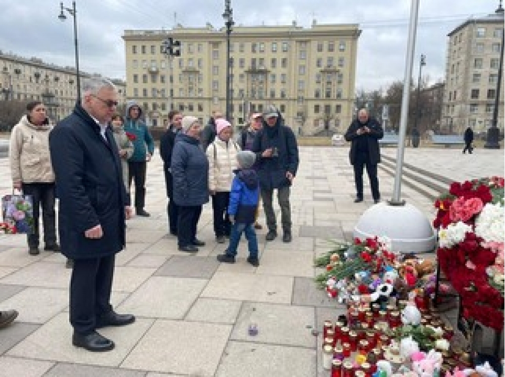 Azərbaycanın Rusiyanın Sankt-Peterburq şəhərindəki baş konsulu Sultan Qasımov improvizə olunmuş memorial önünə gül dəstələri qoyub, Moskva vilayətində törədilmiş terror aktı zamanı həlak olanların Xatirə kitabına başsağlığı və dəstək ifadələrini qeyd edib.