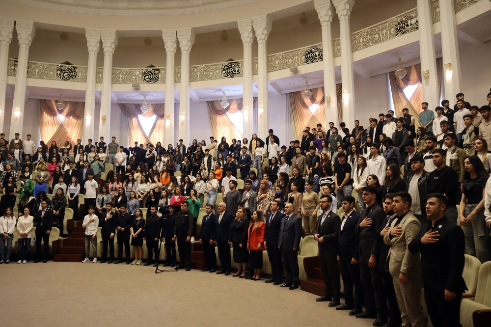 “İki sahil” xəbər verir ki, tələbə-gənclərin iştirak etdiyi tədbirdə əvvəlcə Ulu Öndər Heydər Əliyevin və Azərbaycanın ərazi bütövlüyü uğrunda canlarını qurban vermiş şəhidlərimizin əziz xatirəsi bir dəqiqəlik sükutla yad edilib. Sonra Azərbaycan Respublikasının Dövlət Himni səsləndirilib.
