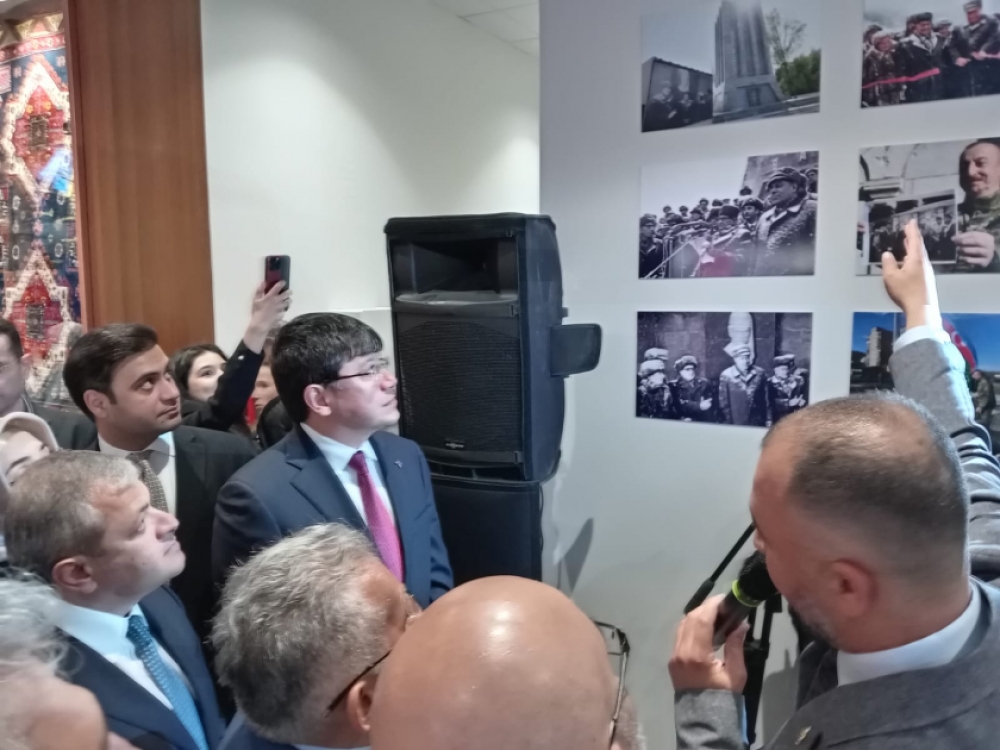 Mərasim iştirakçıları "Şuşa" Azərbaycan Evinin açılışını simvolizə edən lenti kəsib, stendlərlə tanış olublar.