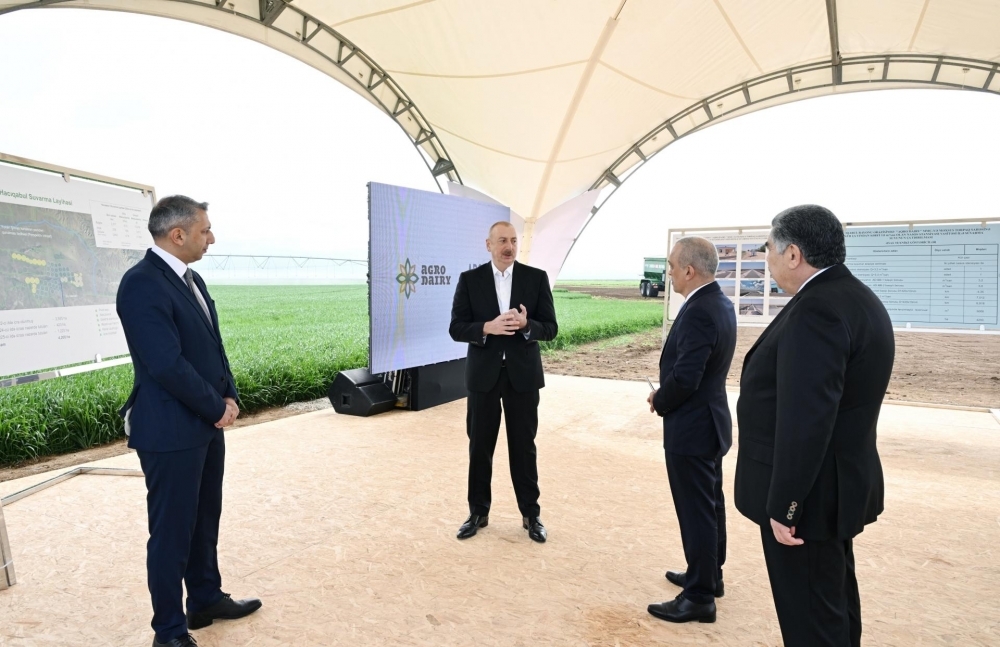 “İki sahil” xəbər verir ki, dövlət başçısı Hacıqabul rayonu Muğan-Birinci Paşalı-İkinci Paşalı-Şorbaçı-Birinci Udullu-Tağılı-İkinci Udullu-Qubalı avtomobil yolunun açılışında iştirak edib və “Agro Dairy” MMC-yə məxsus 4200 hektar torpaq sahəsinə Kür çayından nasos stansiyası vasitəsilə suvarma suyunun çatdırılması üzrə suvarma qurğuları kompleksi ilə tanış olub.