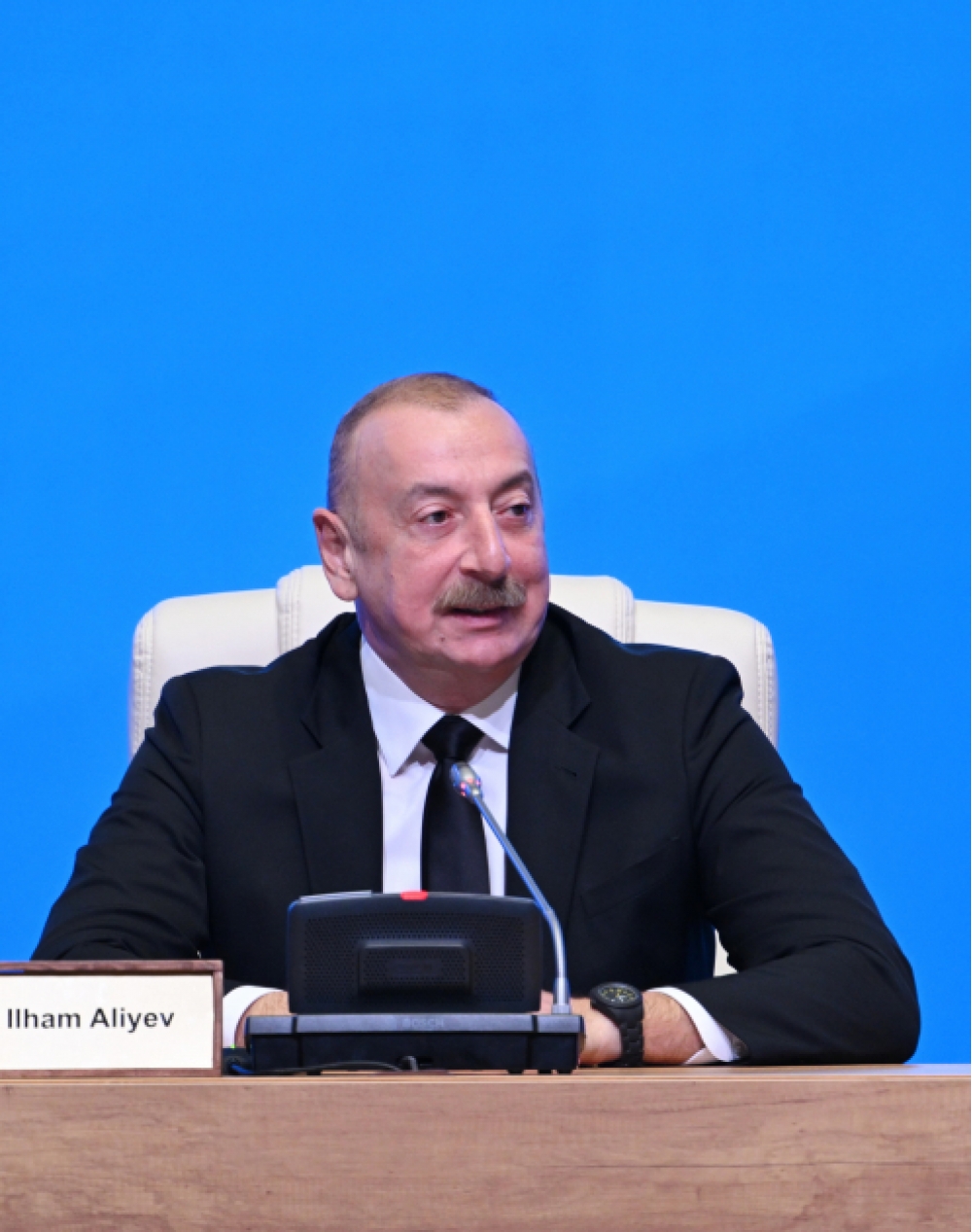Mən bu mötəbər toplantıda Azərbaycan Respublikasının Prezidenti Zati-aliləri İlham Əliyevi salamlamaqdan şərəf hissi duyuram. Prezident Əliyev uzaqgörən lider, mədəniyyətlərarası dialoqun və multikulturalizmin qlobal carçısıdır. 2008-ci ildə Prezident Əliyev müxtəlif mədəniyyətlər və sivilizasiyalar arasında dialoqun və əməkdaşlığın gücləndirilməsi üçün məxsusi təşəbbüsü – “Bakı Prosesi”ni irəli sürdü. Bu cür uzaqgörən yanaşma sərhədləri aşaraq və parçalanmanı aradan qaldıraraq millətlər arasında da daha böyük anlaşma və qarşılıqlı hörmətə yol açdı.
