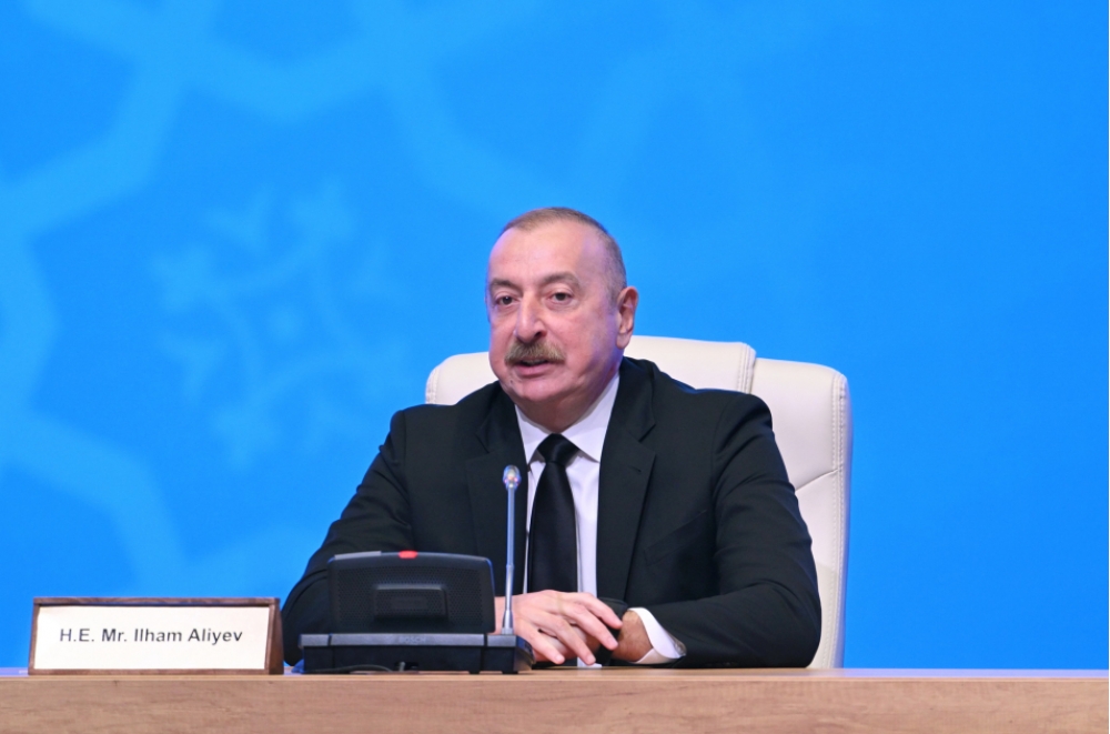 Ötən ilin sentyabr ayında biz ərazi bütövlüyümüzü, suverenliyimizi tam bərpa edəndən sonra Ermənistanın dırnaqarası qarantorları tərəfindən siyasi hücumlara məruz qaldıq. Buna baxmayaraq, biz yenə sülh təklif etdik. İndi isə biz, əslində, müsbət tendensiyaya və sülhə doğru gedirik, sərhədlərin delimitasiyası başlayıb. Nəinki delimitasiyası, hətta demarkasiyası başlayıb. Mən burada çıxış etdiyim zaman bu iş gedir. Buna iki ölkə tərəfindən hər hansı bir vasitəçi olmadan nail olunub. Bu, bir daha onu göstərir ki, bizə vasitəçi lazım deyil. Xüsusən də o insanlar ki, məhz öz məqsədlərini güdürlər və yardım etmək istəmirlər. Onlar bizim bölgəyə öz fərdi, siyasi və iqtisadi maraqları naminə müdaxilə etmək istəyirlər. Onlar həmin alova yenidən odun atmaq istəyirlər. Biz Cənubi Qafqazda buna icazə verməyəcəyik, imkan verməyəcəyik. Otuzillik toqquşmadan sonra Ermənistan da aydın şəkildə anlayır ki, biz Cənubi Qafqazda sülh istəyirik və sülh bu bölgədə yalnız Azərbaycanla Ermənistan arasında normallaşma vasitəsilə həll oluna bilər.