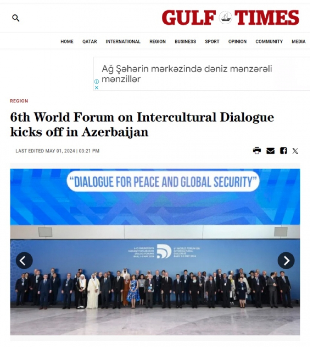 Bakıda keçirilən “Sülh və qlobal təhlükəsizlik naminə dialoq” mövzusunda VI Ümumdünya Mədəniyyətlərarası Dialoq Forumu və Prezident İlham Əliyevin tədbirin açılış mərasimindəki nitqində səsləndirdiyi fikirlər hələ də dünyanın bir sıra nəşrlərinin diqqət mərkəzində qalmaqdadır.